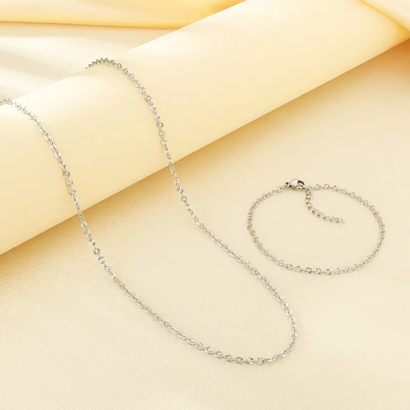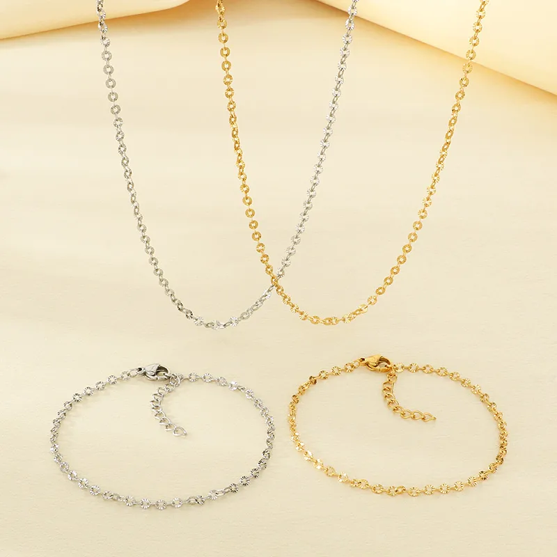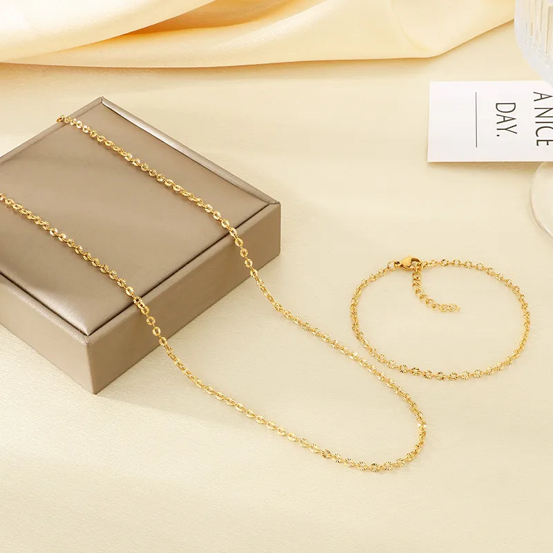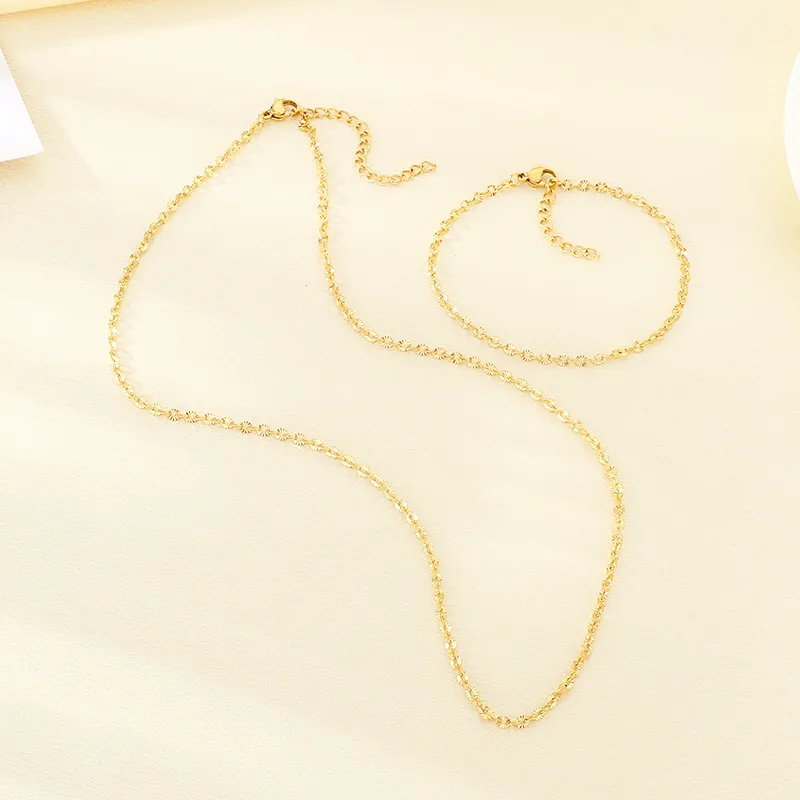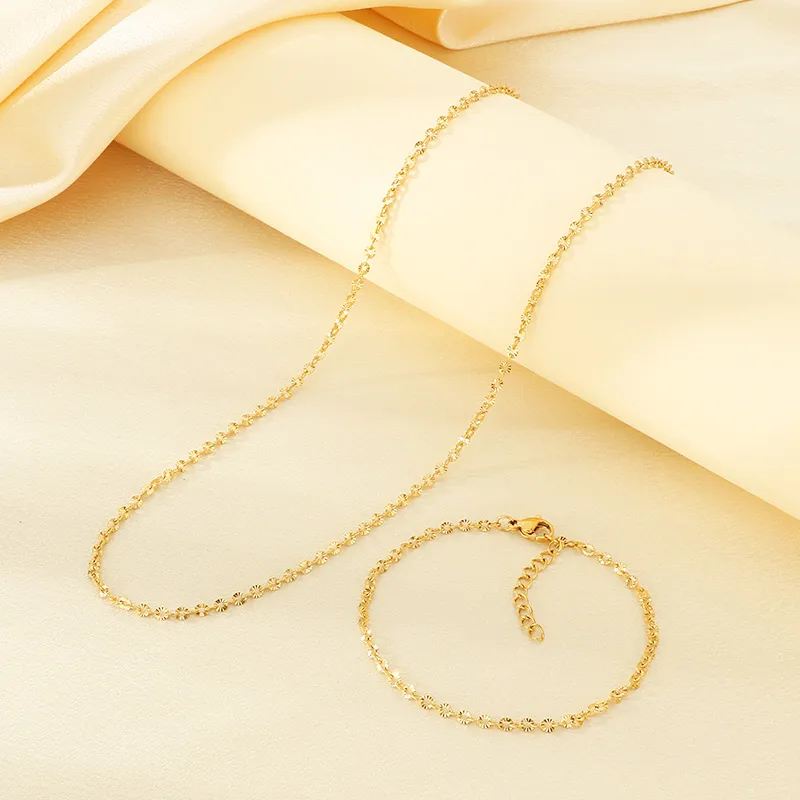 18K Gold Plated 304 Stainless Steel Vacuum Electroplated Geometric Round Embossed Necklace Jewelry Set