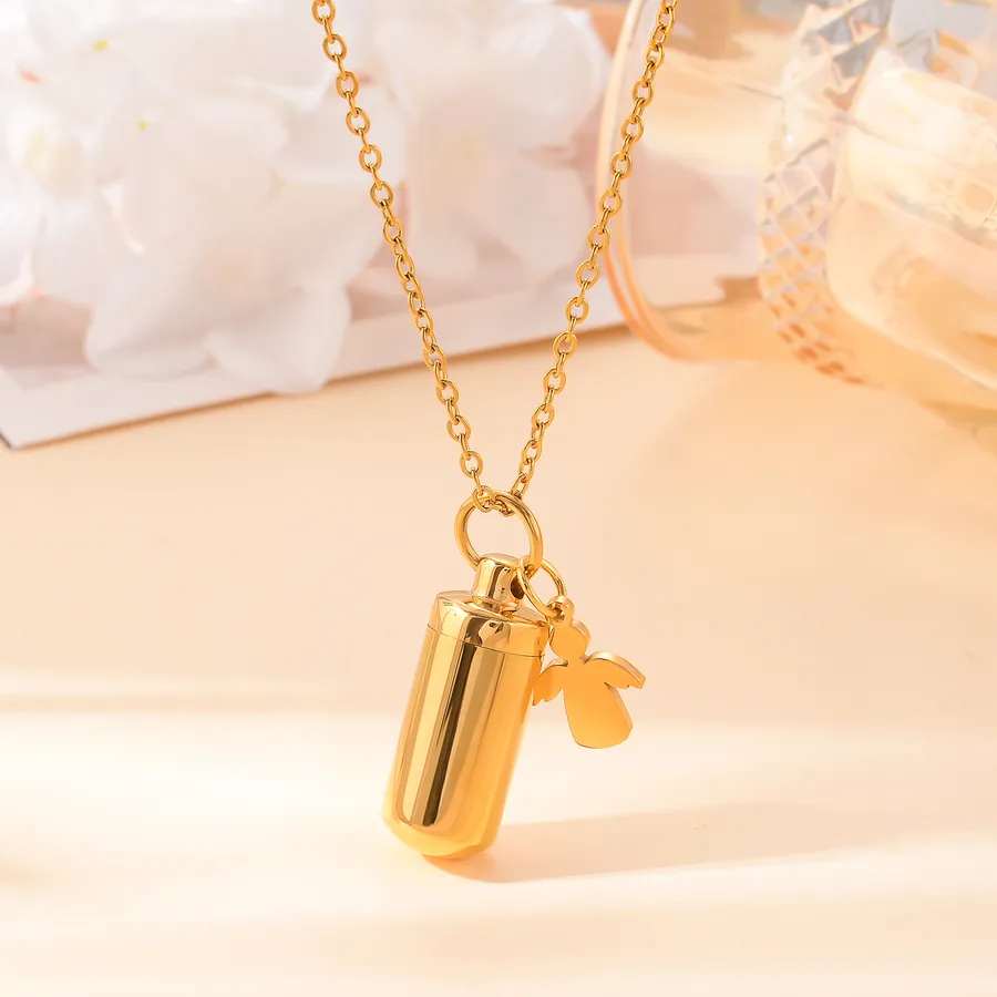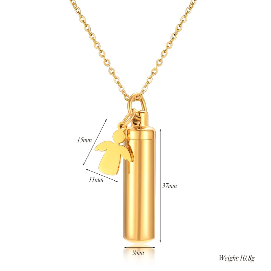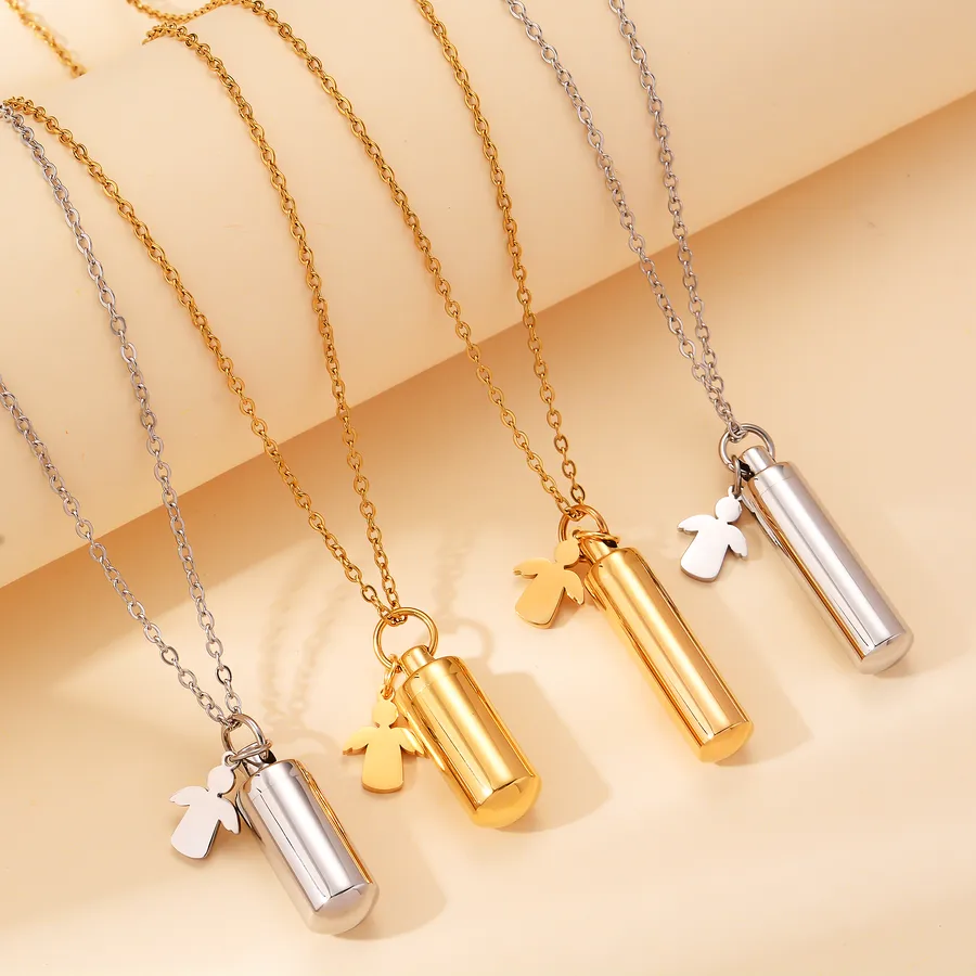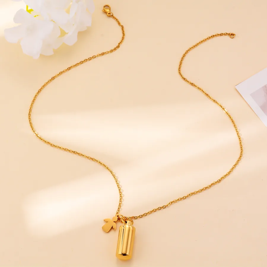 18K Gold Plated 304 Stainless Steel Vacuum Electroplating (In Furnace) Angel Cylinder Perfume Bottle Pendant Two-tone Size Optional Unisex Commemorative Jewelry Waterproof Non-fading Handmade Chain
