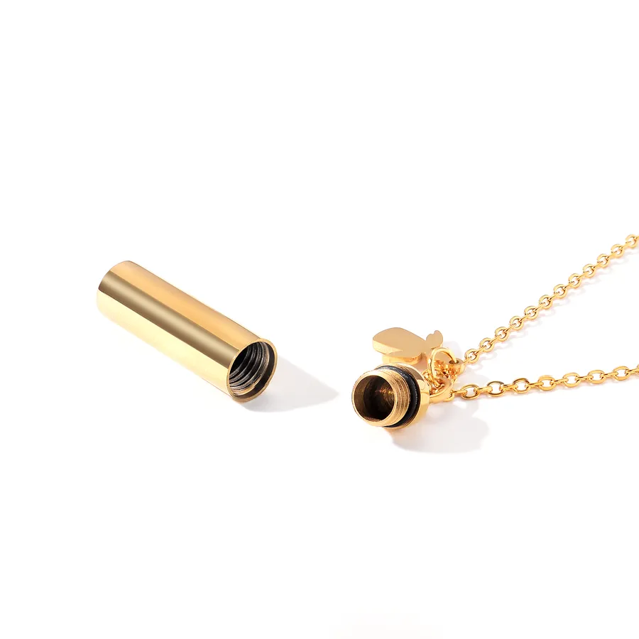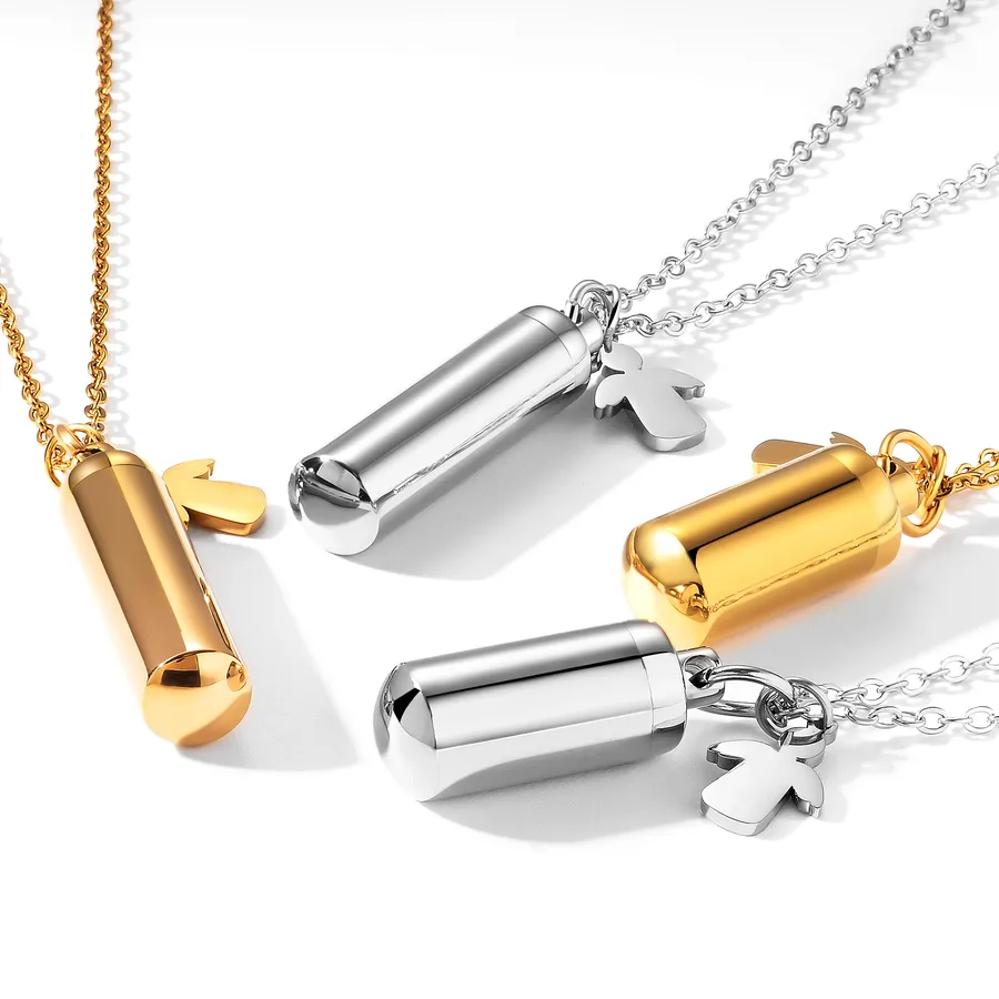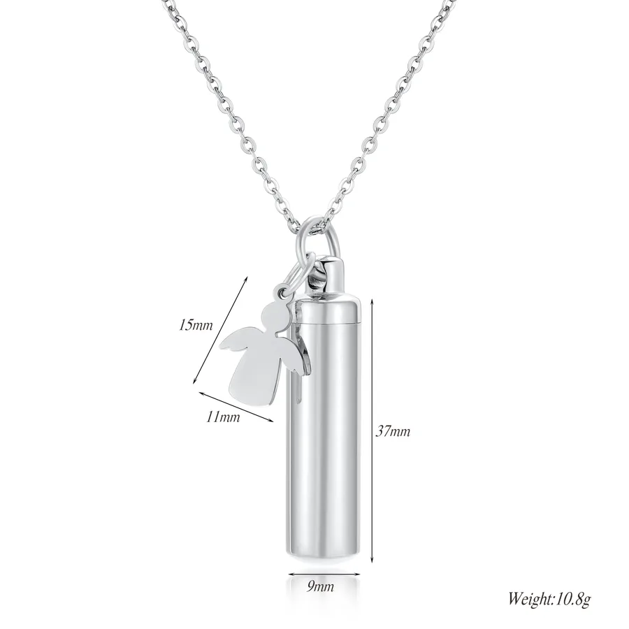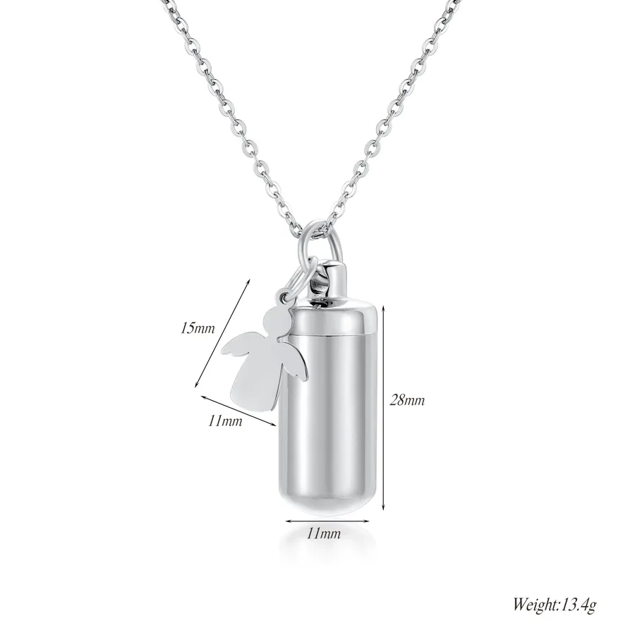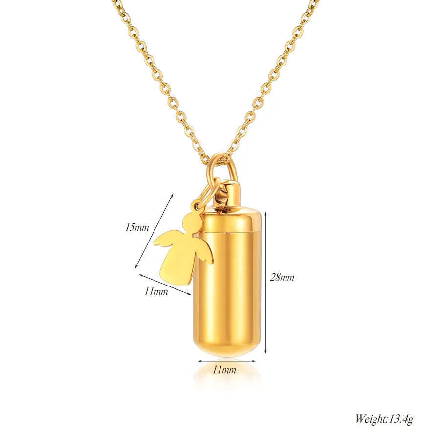 18K Gold Plated 304 Stainless Steel Vacuum Electroplating (In Furnace) Angel Cylinder Perfume Bottle Pendant Two-tone Size Optional Unisex Commemorative Jewelry Waterproof Non-fading Handmade Chain