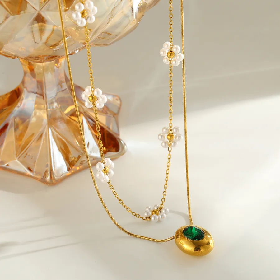 18K Gold Plated 304 Stainless Steel Vacuum Electroplating (In Furnace) Rhinestone Round Square Star Electroplating Double Layer Snake Chain Cable Chain/Cross Chain/O Chain Necklace for Women