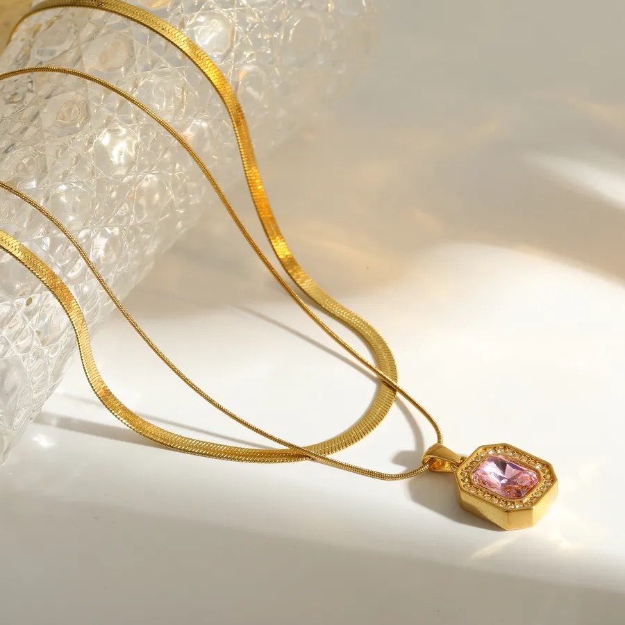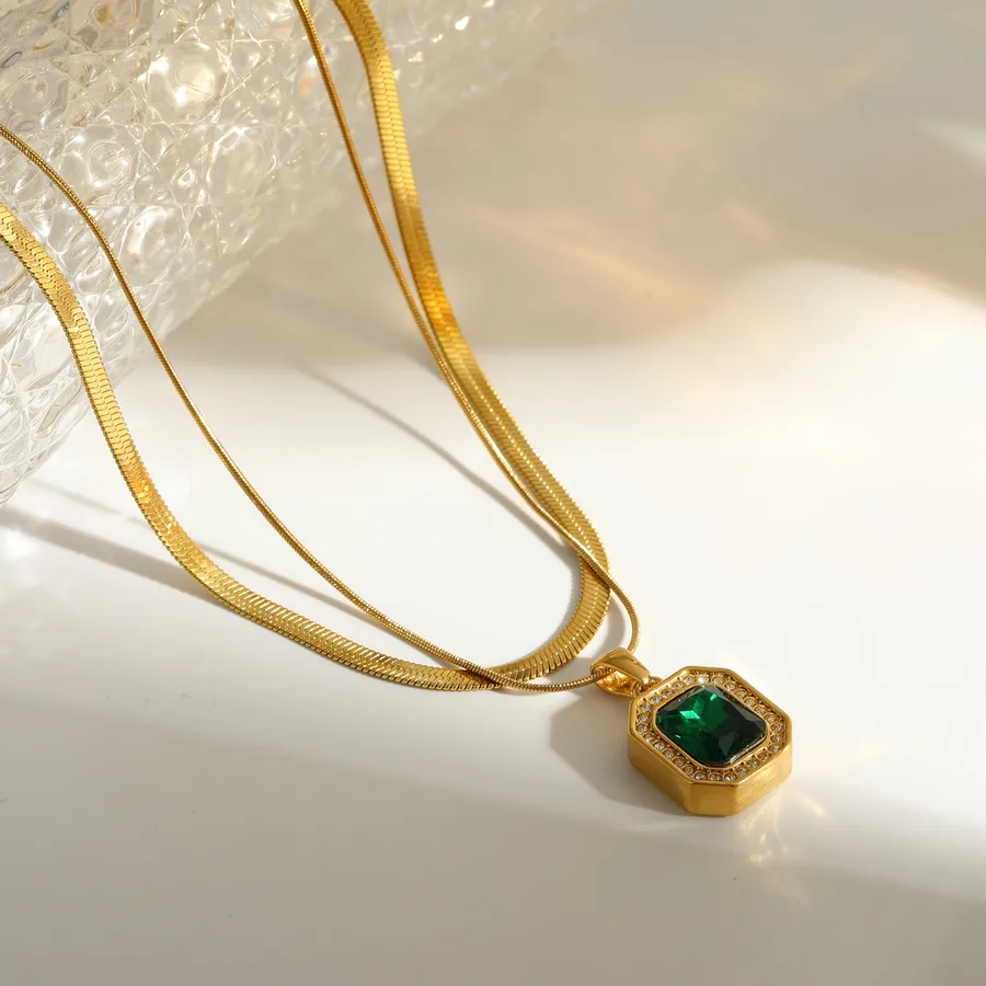 18K Gold Plated 304 Stainless Steel Vacuum Electroplating (In Furnace) Rhinestone Square Snake Chain Double Layer Vintage Women’s Necklace