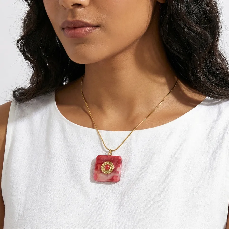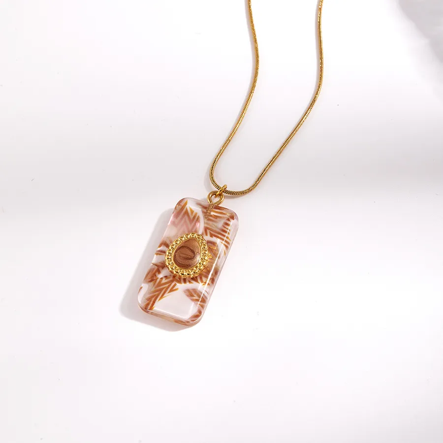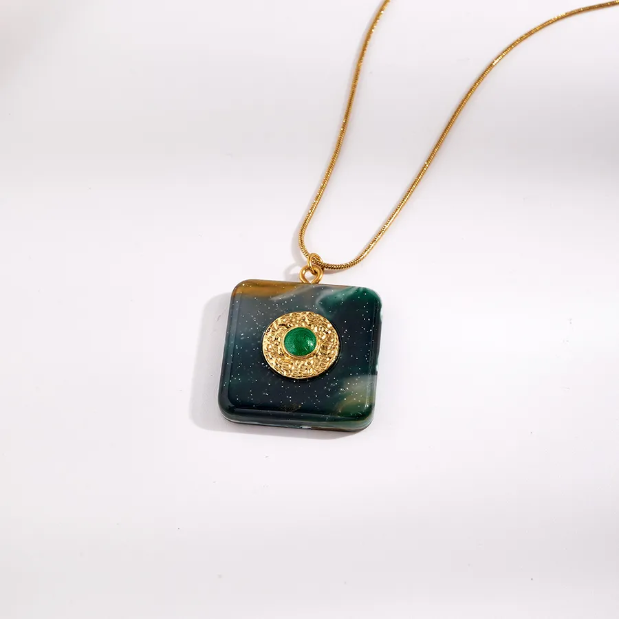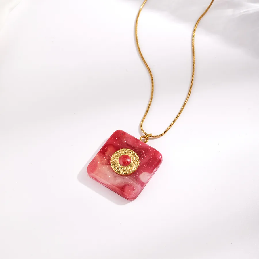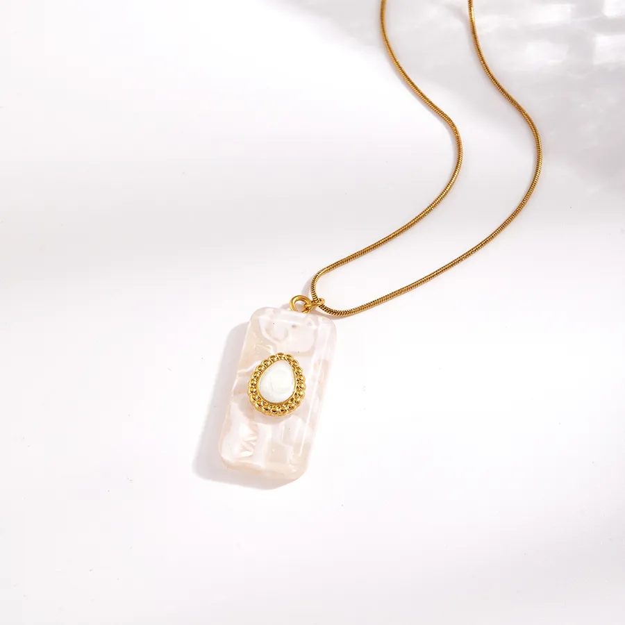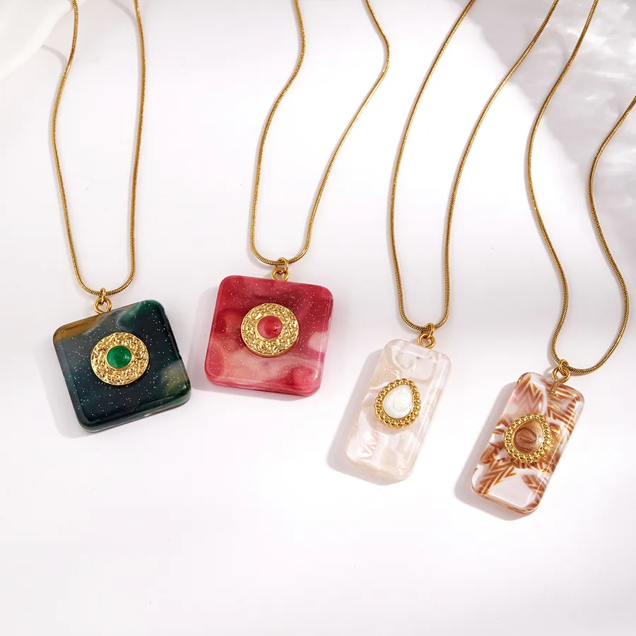18K Gold Plated Classic 304 Stainless Steel Vacuum Electroplating (In Furnace) Resin Round Square Rectangle Handmade Polished Oil Drop Necklace for Women
