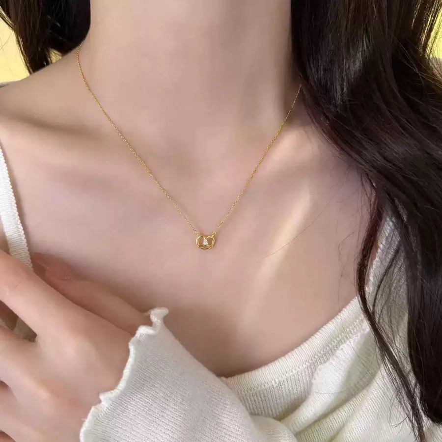 18K Gold Plated Rhodium Plated 925 Sterling Silver Double Ring Alkaline Water Bag White Zircon Necklace Collarbone Chain Choker