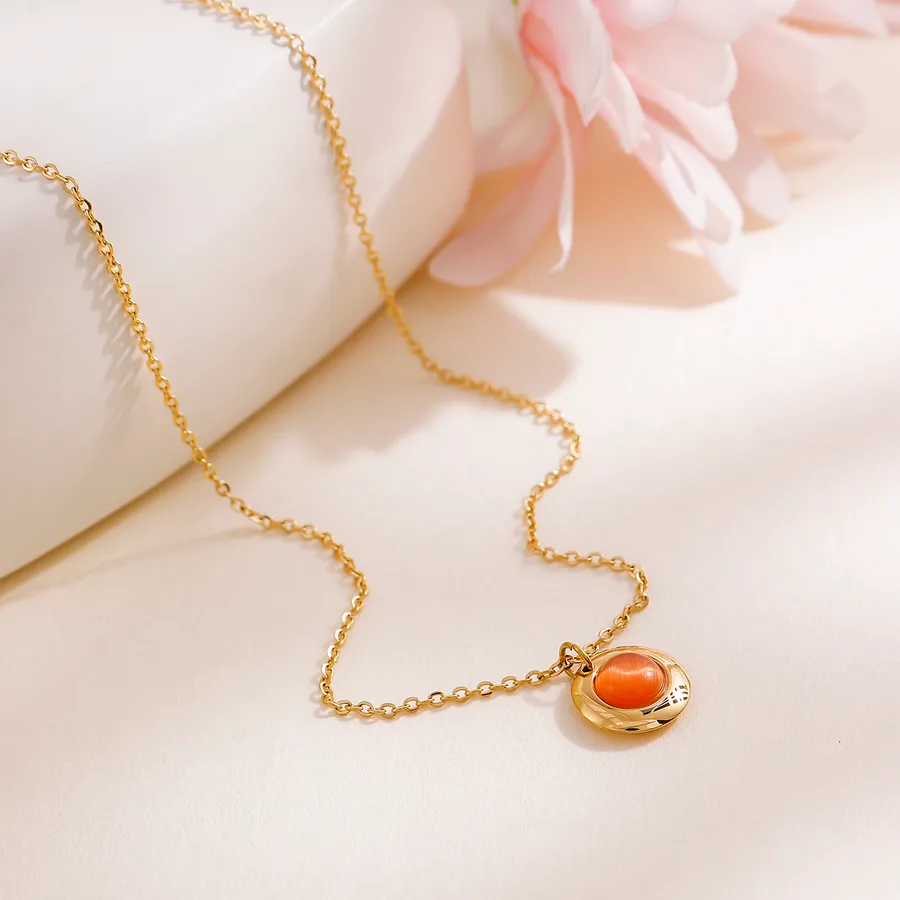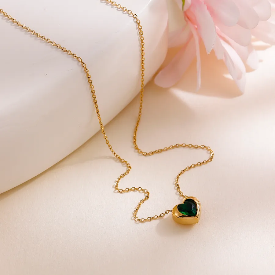 18K Real Gold Plated Red Heart Pendant Necklace 304 Stainless Steel Casual Style Simple Sweater Chain Necklace
