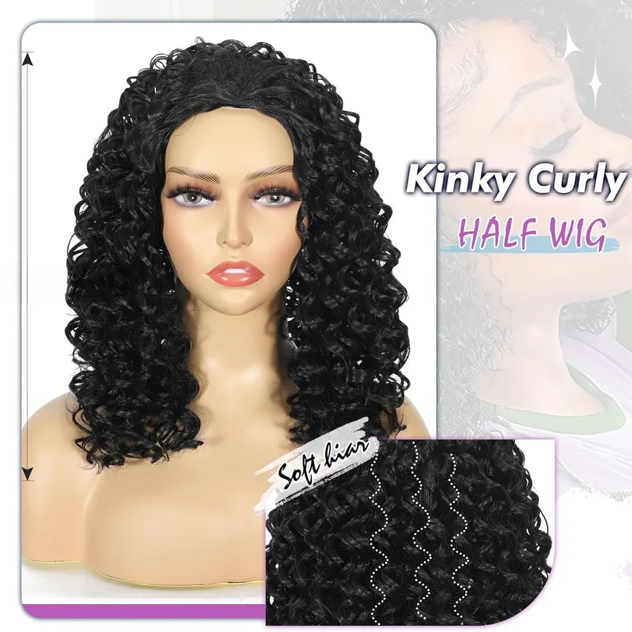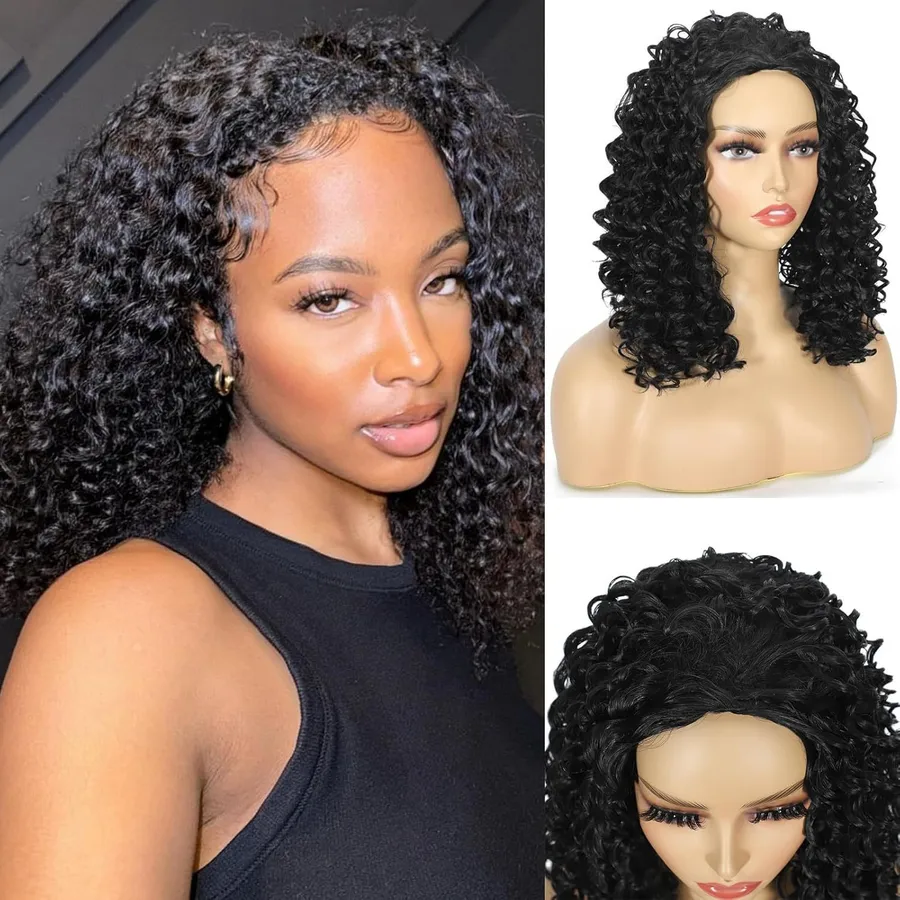 3-in-1 Drawstring African Twist Women’s Medium-Length Wig Black Full Head Hair Extension African