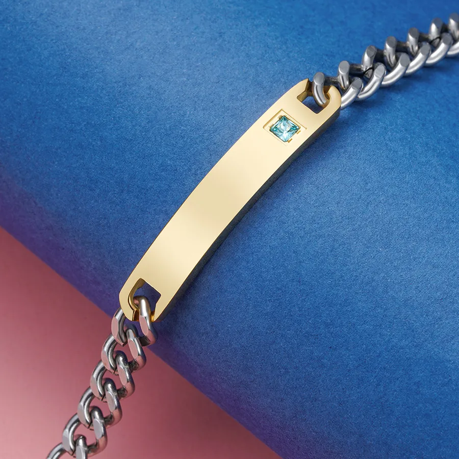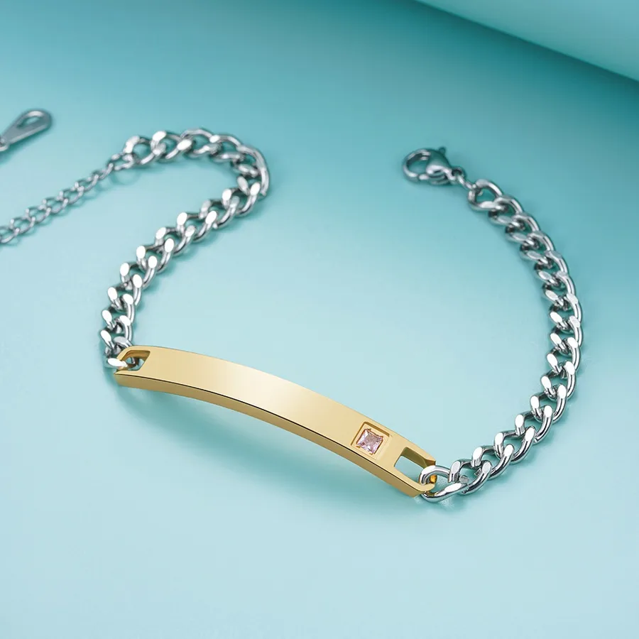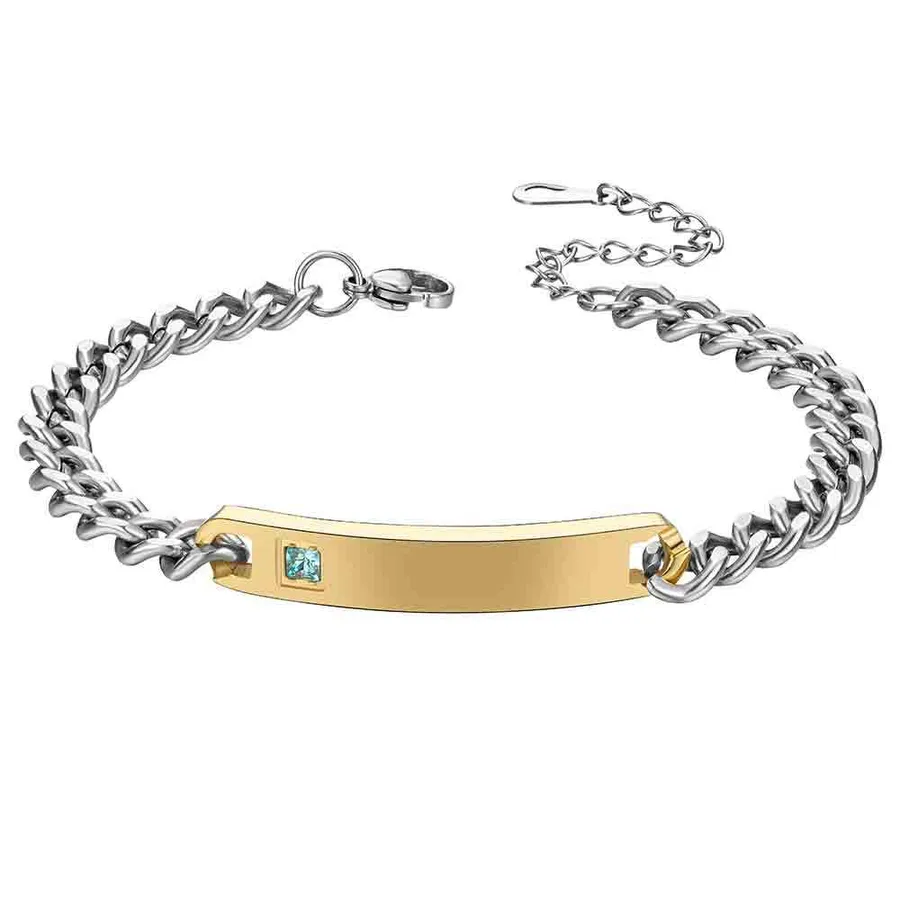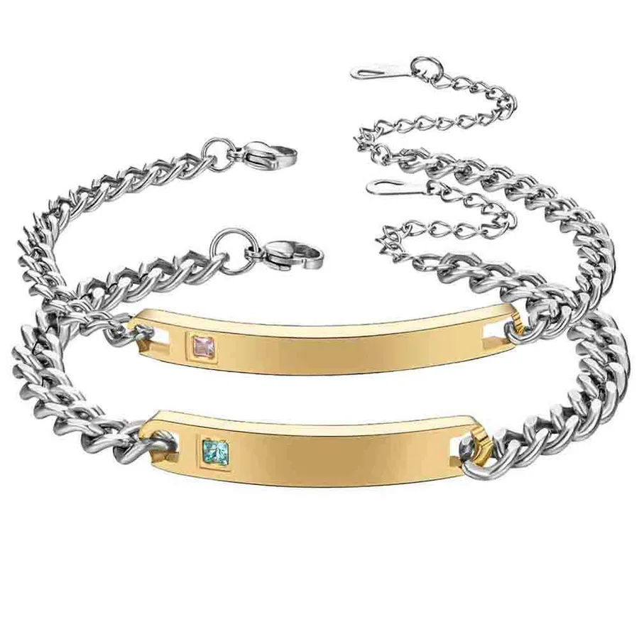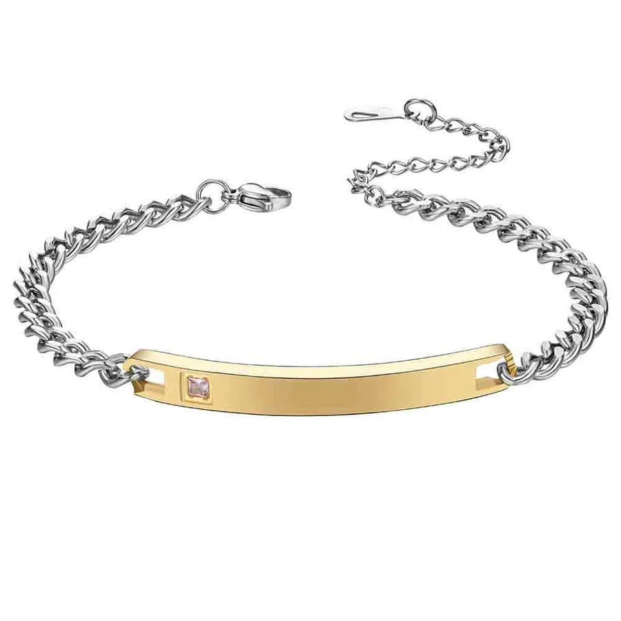 5mm Stainless Steel 18K Gold Inlaid Diamond Simple Couple Bracelet Geometric Zircon