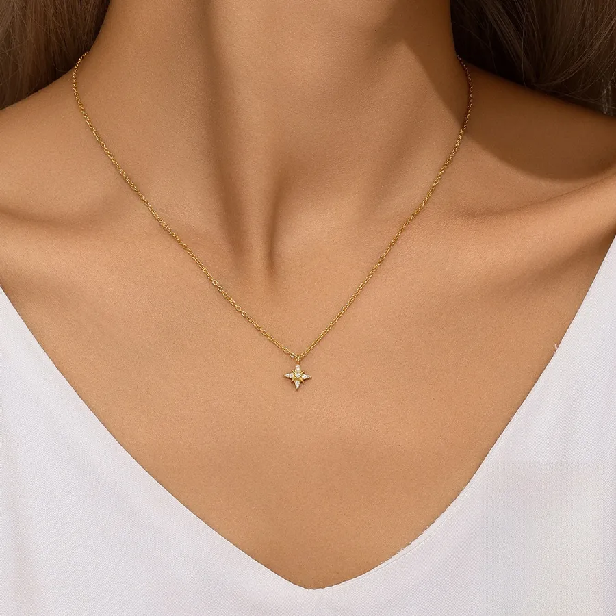 925 Sterling Silver Silver Star Pendant Necklace for Women Classic Clavicle Chain Jewelry Trendy Geometric Design