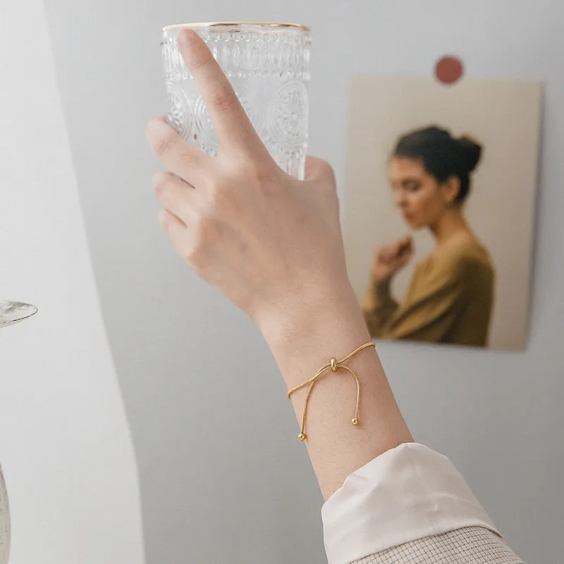 Adjustable Drawstring Women’s Bracelet Set Sexy 18K Gold Plated Stainless Steel Rose Gold U-Shaped Birthday Party