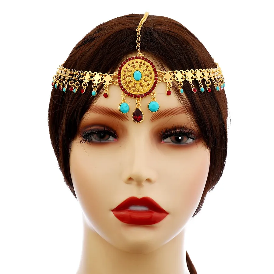 Ancient Style Alloy Hairband with Tassels and Rhinestones for Women, Geometric French Style