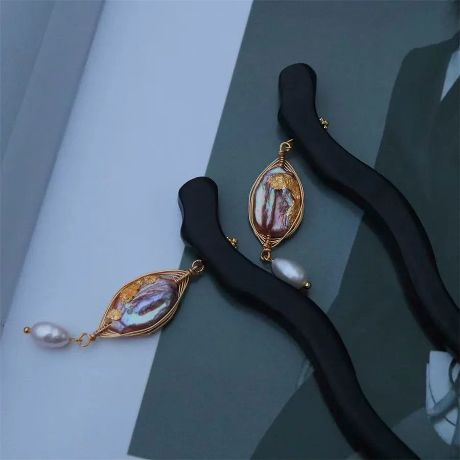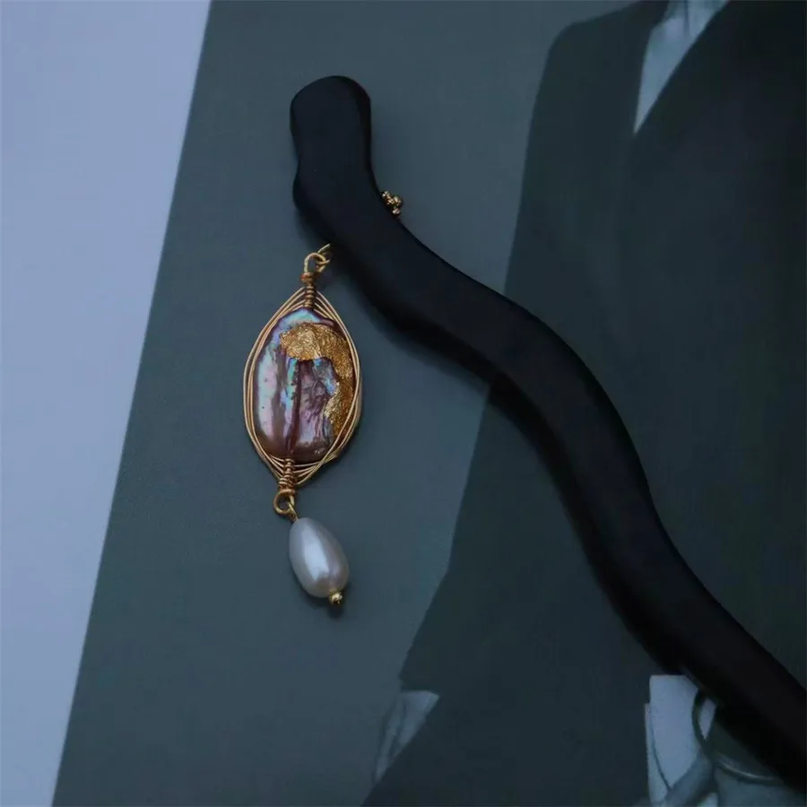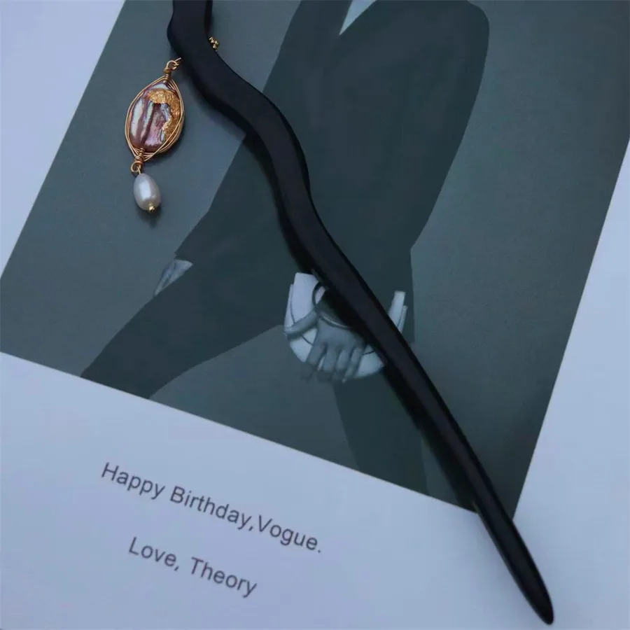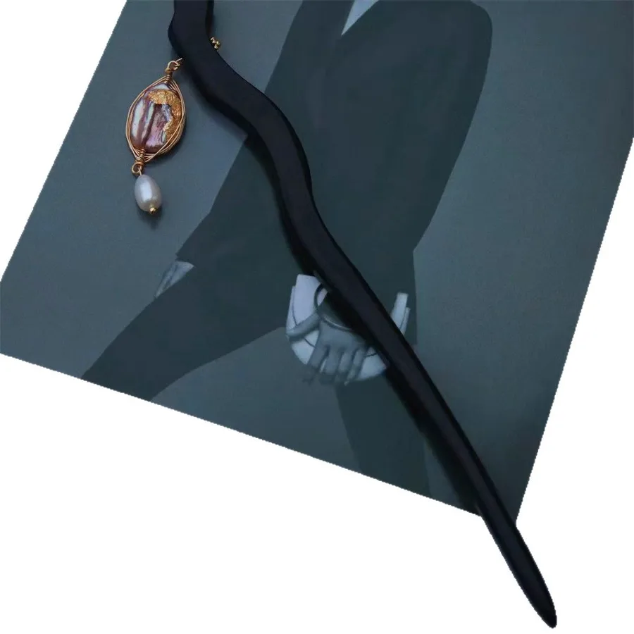 Black Wooden Hairpin Handmade Pearl Women’s Accessories Hanfu Qipao Traditional Craftsman Gold Foil Sticker