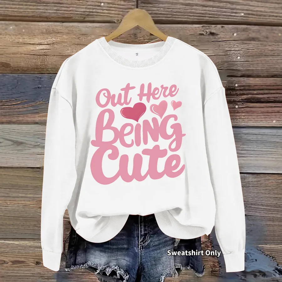 Casual Long Sleeve Round Neck Letter Print Sweatshirt Women’s Street Polyester Spandex Spring Summer