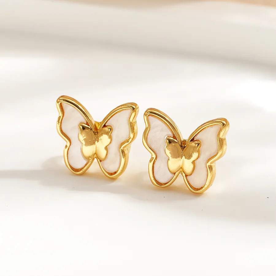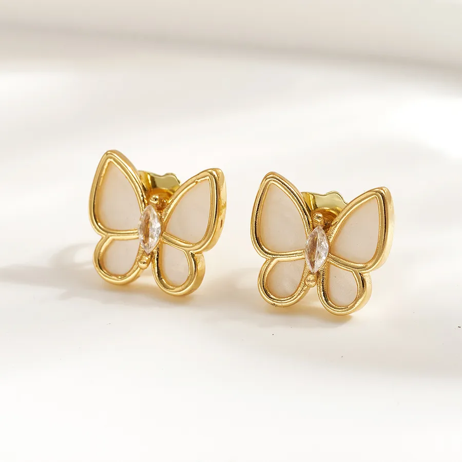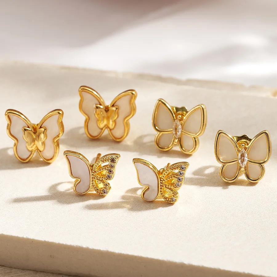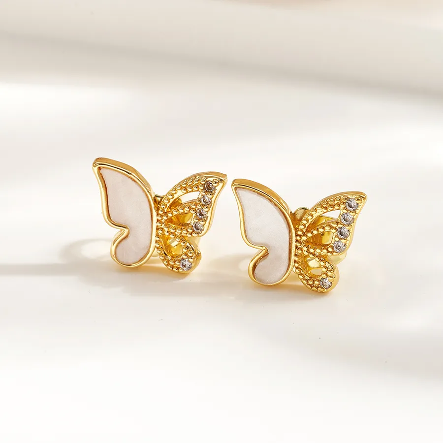 Casual Style 18K Gold Plated Copper Color Retention Electroplated Zircon Shell Butterfly Polished Claw Setting Earrings