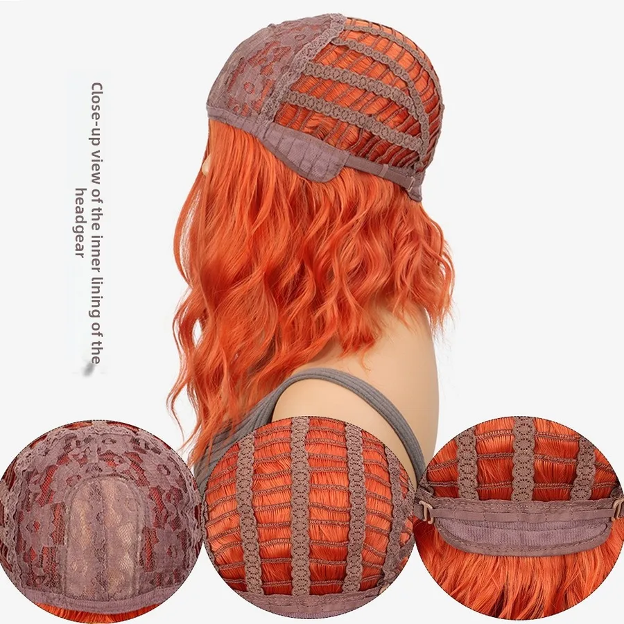 Color Gradient Layered Short Hair Water Wave Texture Wig Cap For Women Heat Silk Material Fancy Style Synthetic Hair Wig