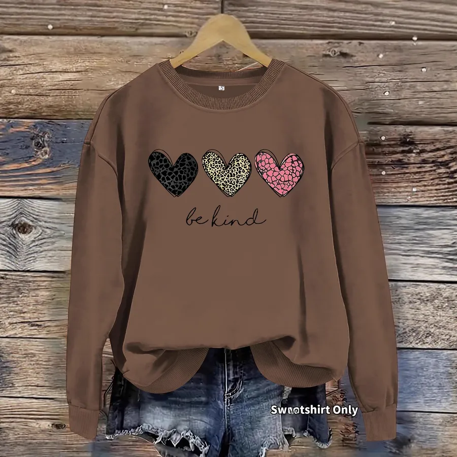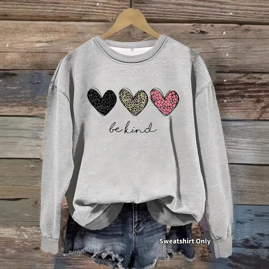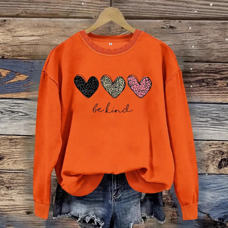 Colorful Heart Print Casual Round Neck Long Sleeve Sweatshirt Loose Fit Sports Base Shirt Women’s Sweatshirt Top