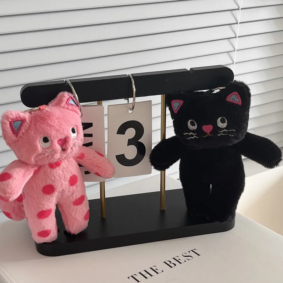 Polka Dot Cat Plush Key Chain [Black]], Polka Dot Cat Plush Key Chain [Pink]]