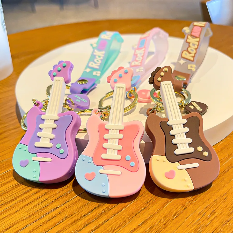 Cute Guitar PVC Women’s Keychain