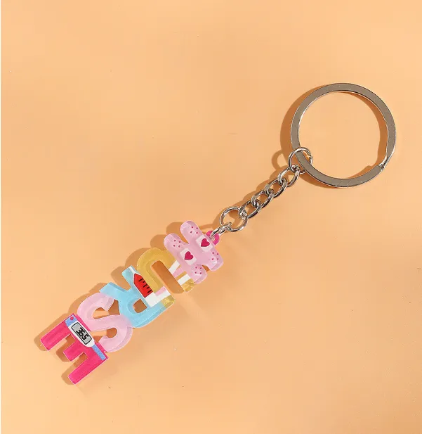 Cute Letter Arylic Ferroalloy Bag Pendant Keychain