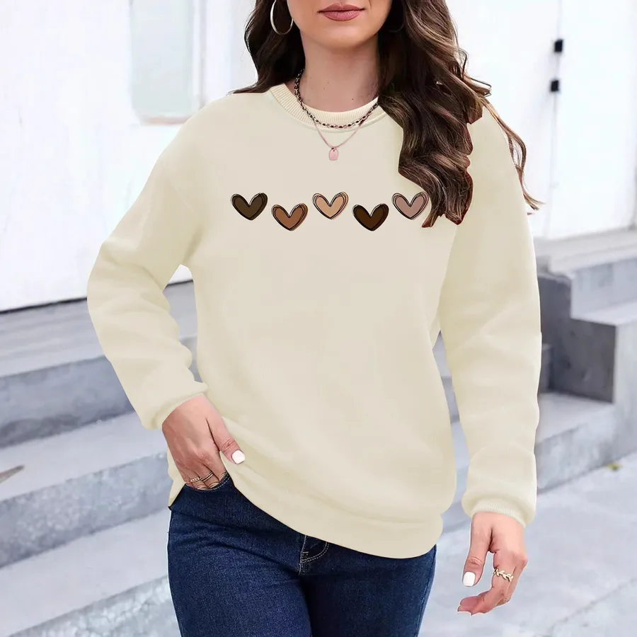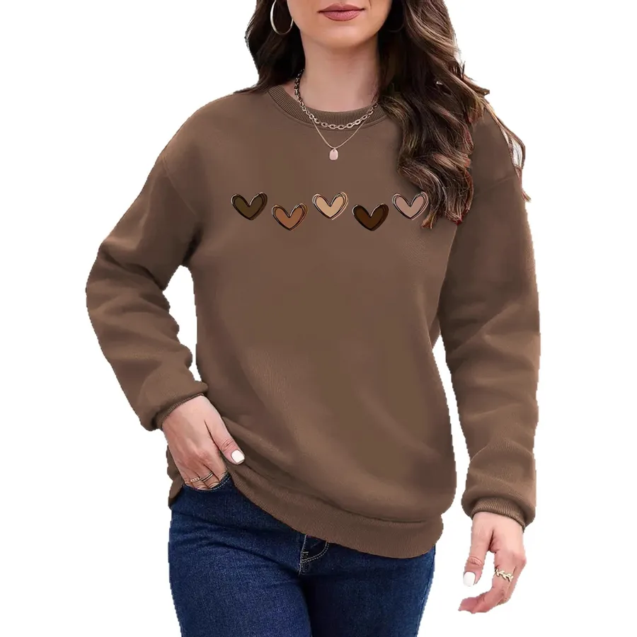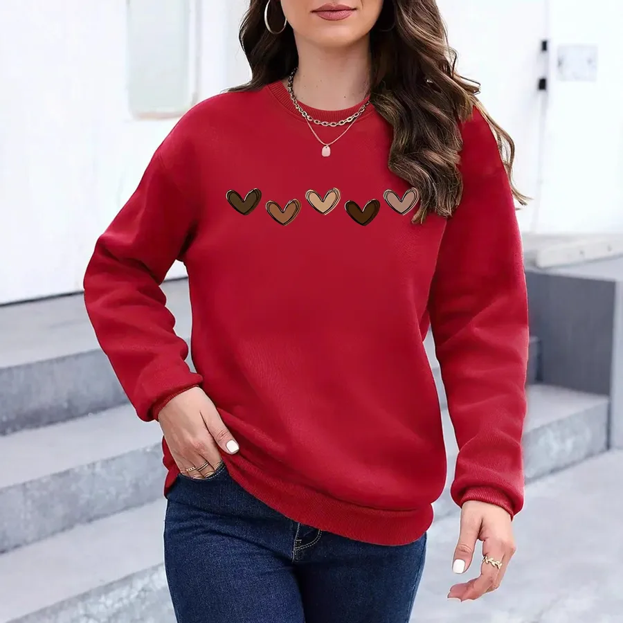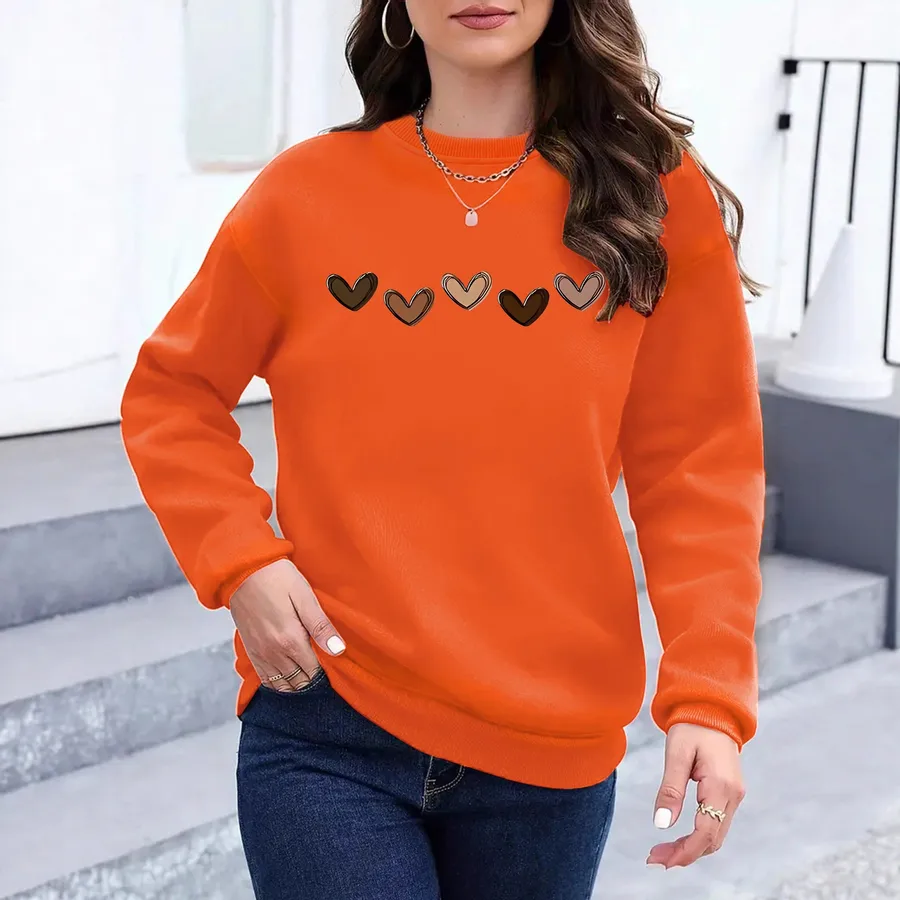 Designed Women’s Hoodie Round Neck Heart Print Autumn Long Sleeve Street High-Quality Polyester Sweatshirt