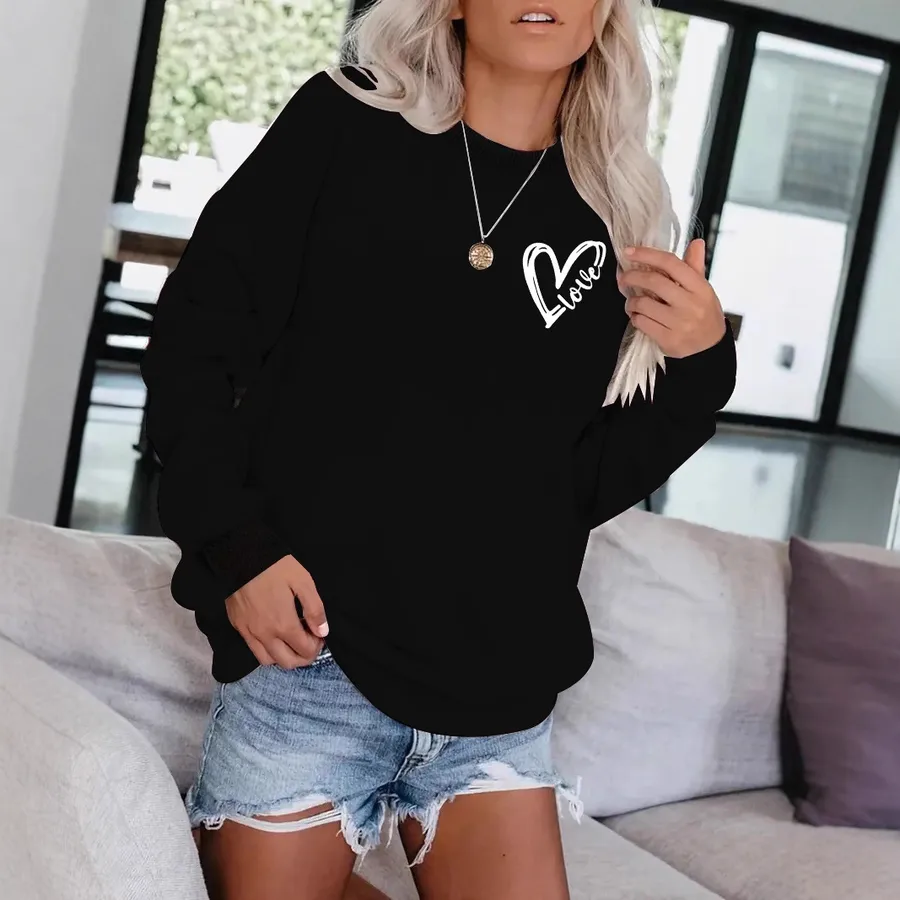Designed Women’s Hoodie Round Neck Printed Heart Autumn Long Sleeve Street High Street Simple Polyester Spandex