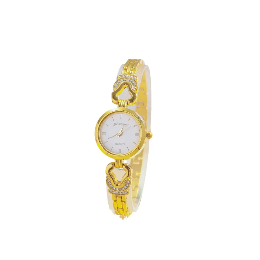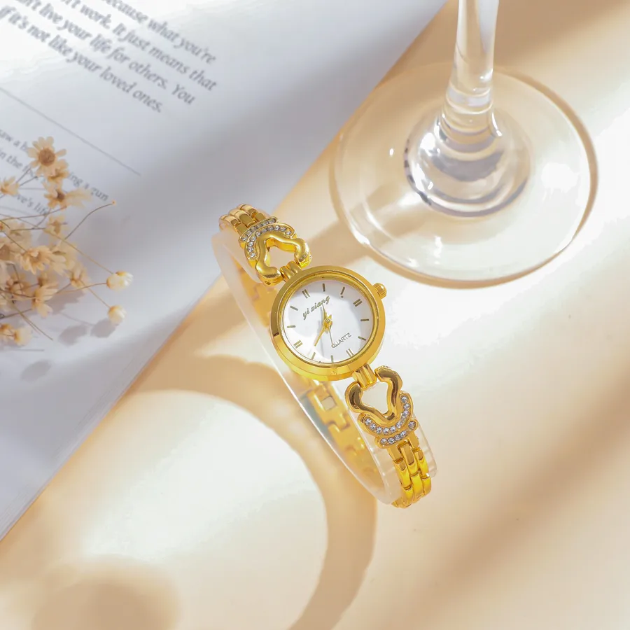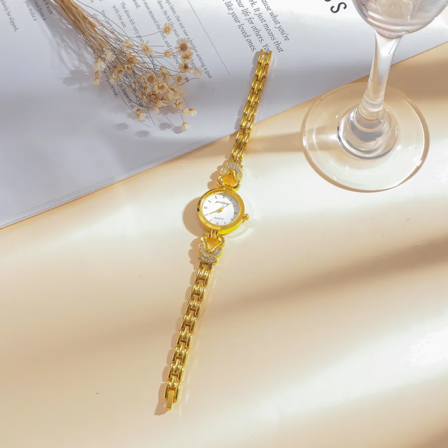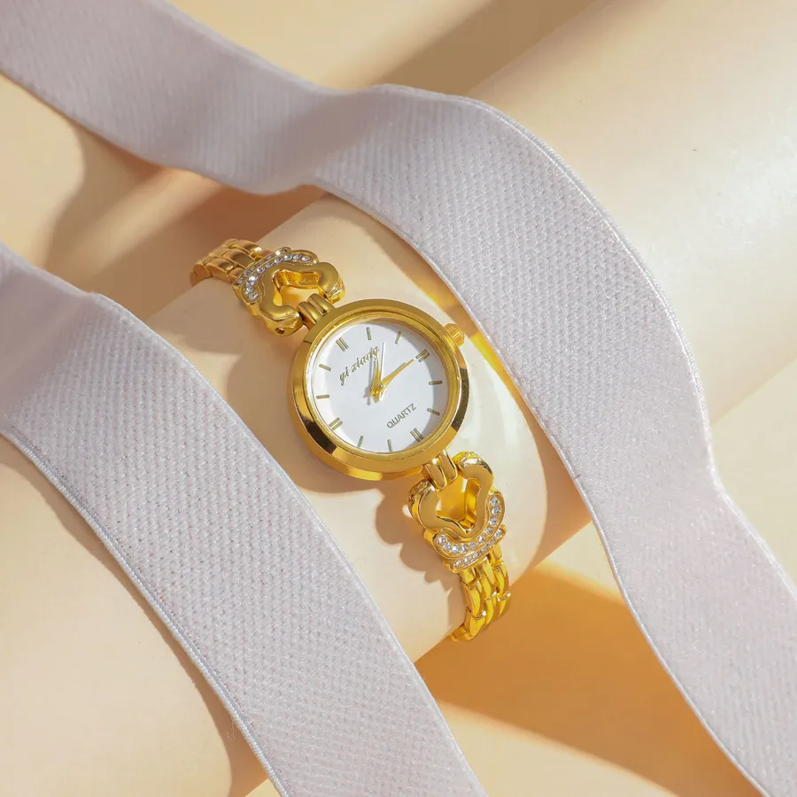 Diamond-encrusted Women’s Watch Round Small Dial Hollow Strap Bracelet Quartz Movement Rose Gold Leather Strap