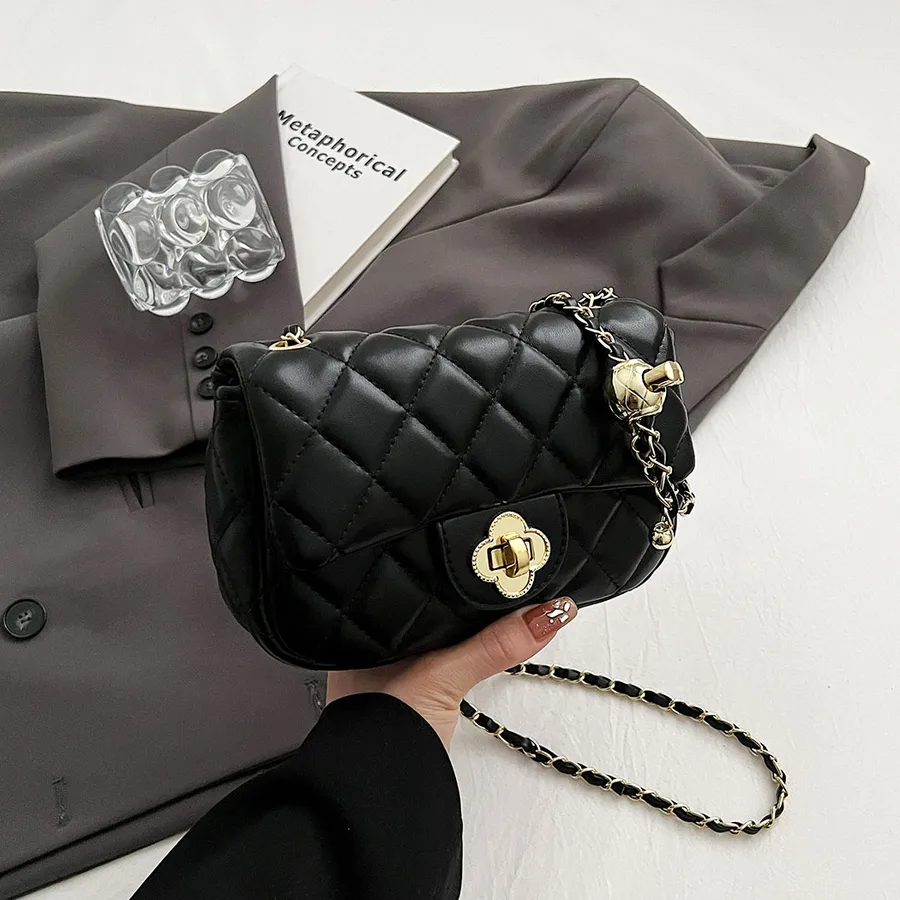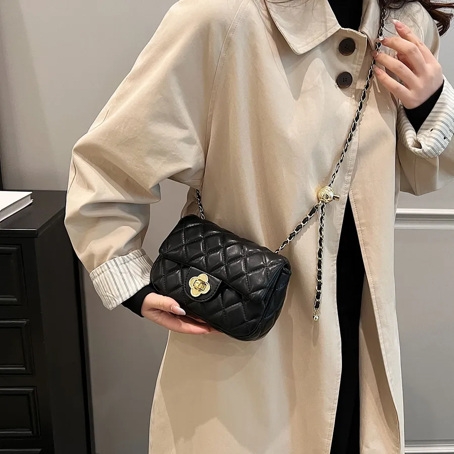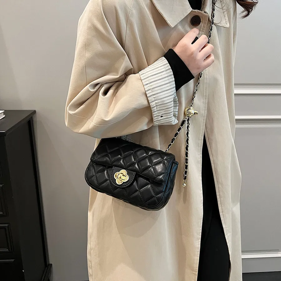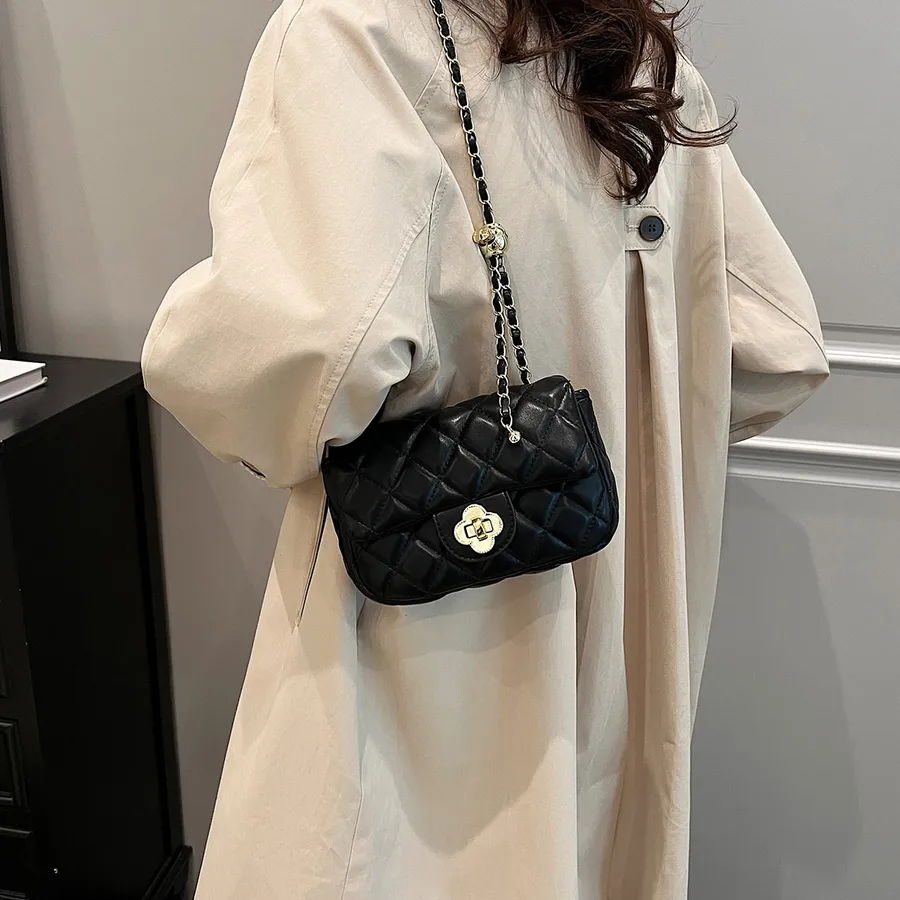 Diamond Grid Retro Portable Square Women’s Single Shoulder Crossbody Bag Faux Leather Metal Buckle Chain Waterproof