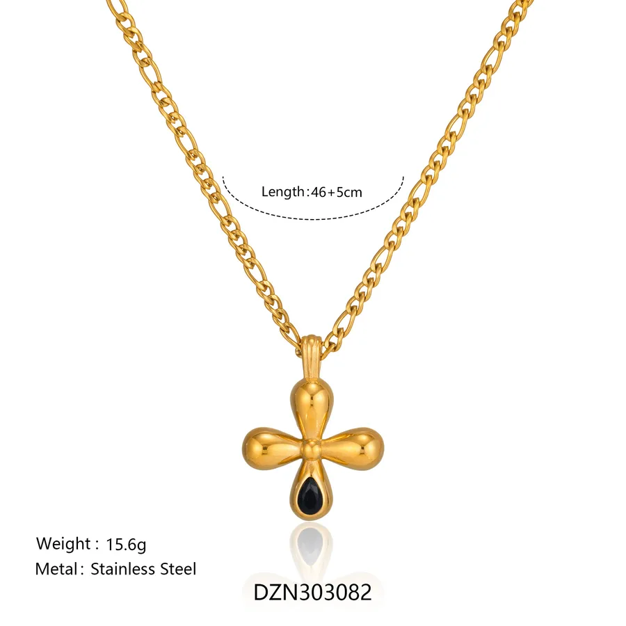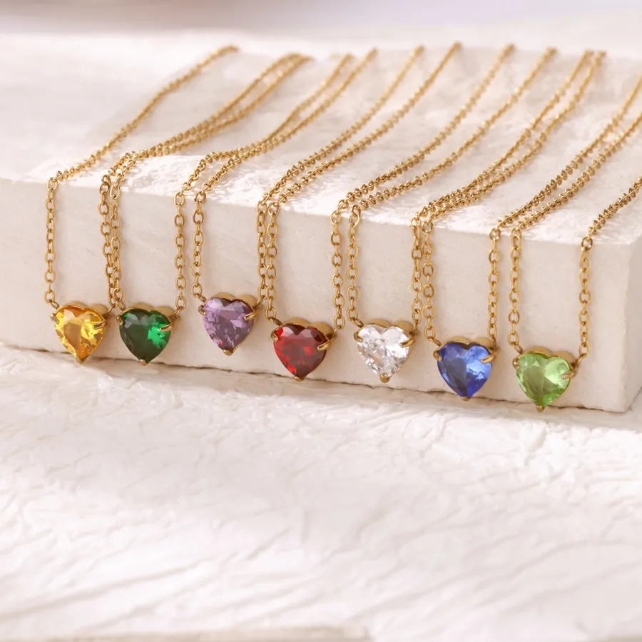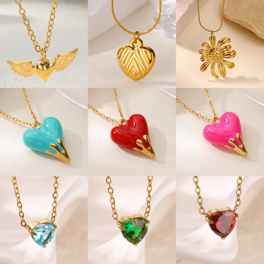 Dopamine Oil Drop Heart Zircon Flower Pendant Necklace 304 Stainless Steel Gold Plated Waterproof Jewelry Couple Gift for Friends