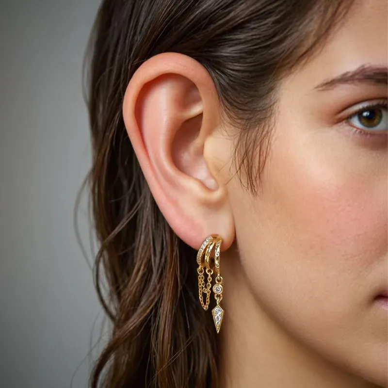 Fashionable Geometric Pattern Women’s Earrings With Zircon Inlay And Willow Nail Design Stylish Layering Trend Copper Material