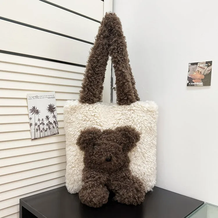 Female Stuffed Animal Cartoon Square Shoulder Bag Spring Autumn Winter