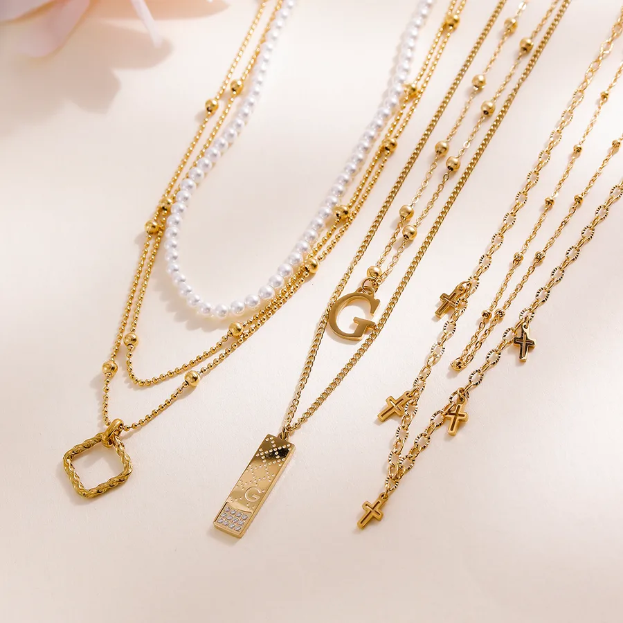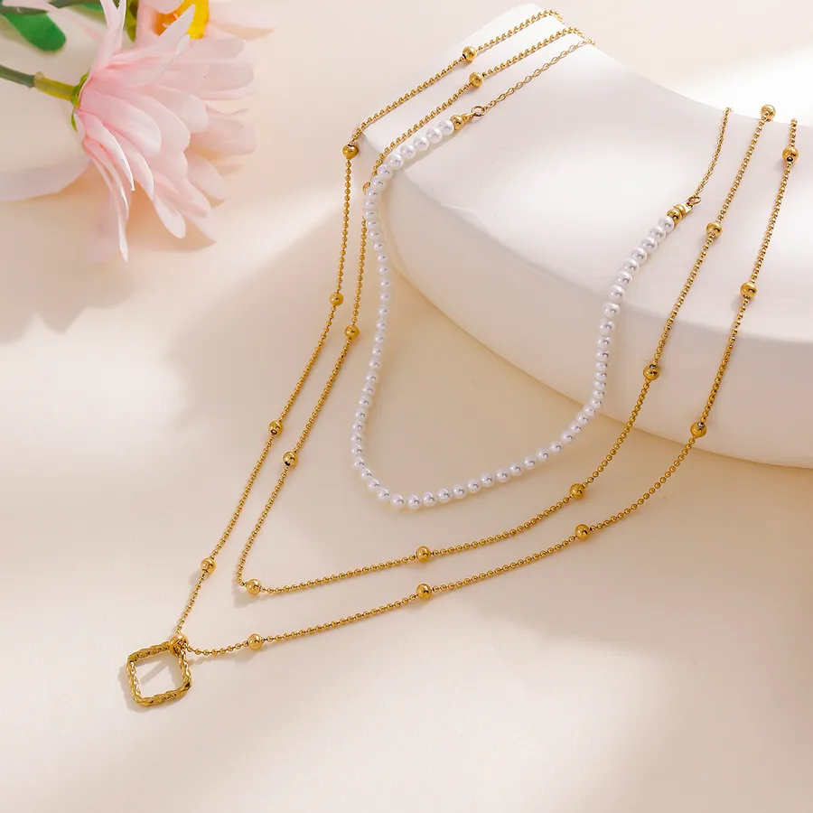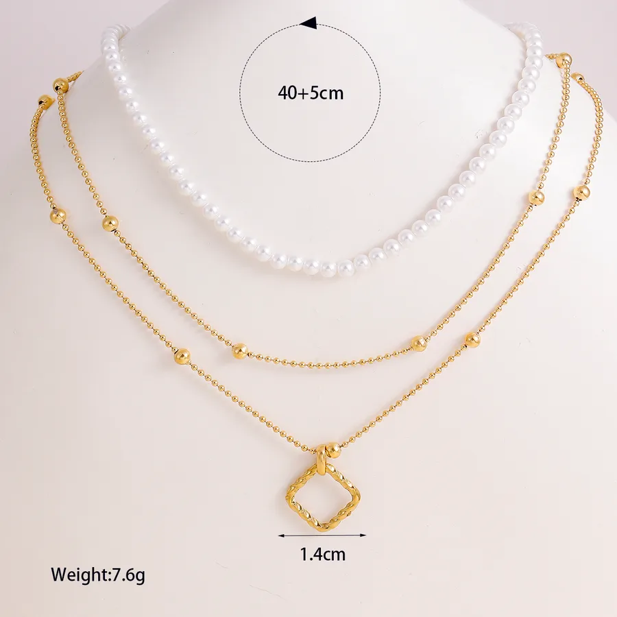 French Style High-End Elegant ABS Imitation Pearl Pendant Multi-Layer Stacking 18K Gold Plated Necklace Jewelry
