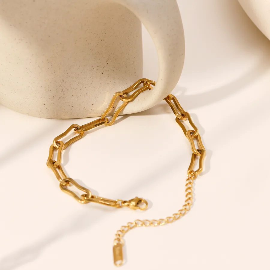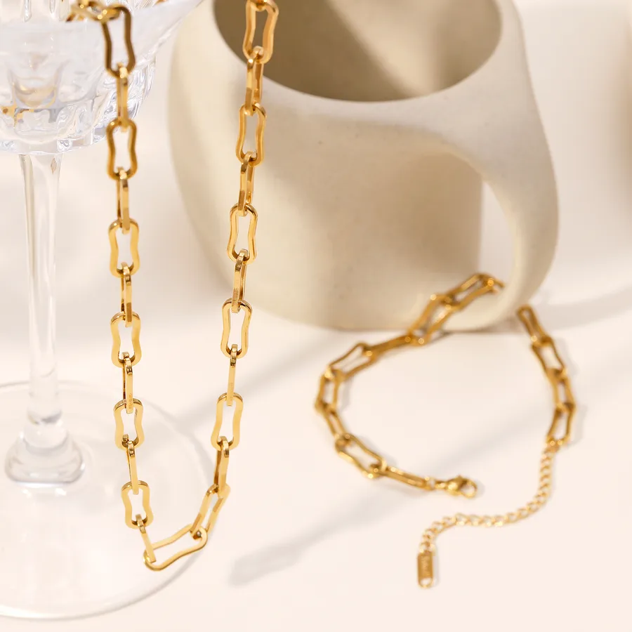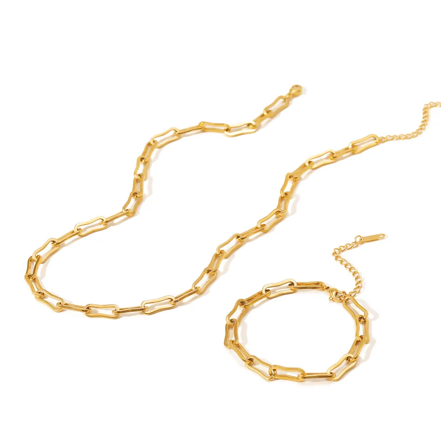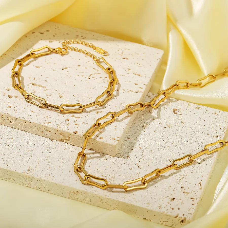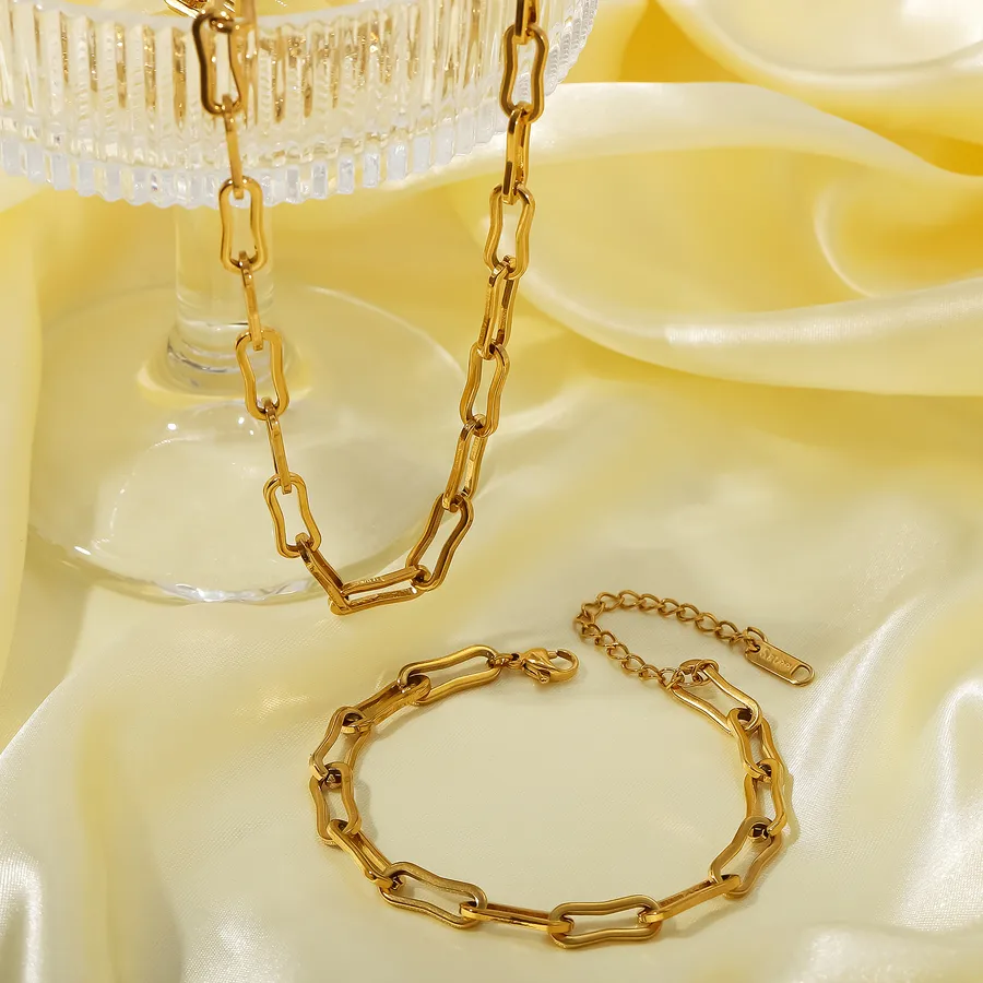 Geometric Minimalist 304 Stainless Steel Gold-Plated Bracelet and Necklace Set, Real Gold Plating, Wearable