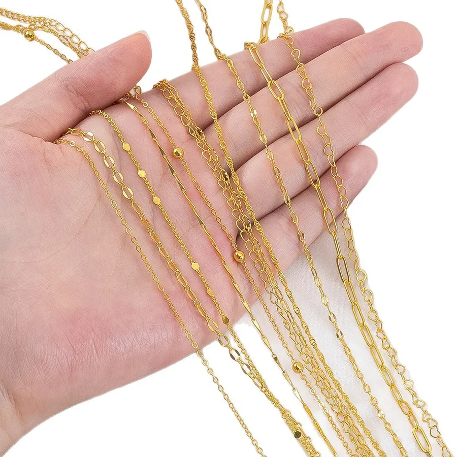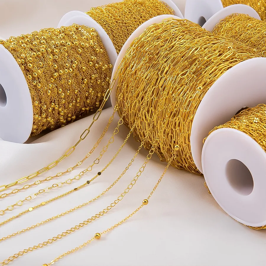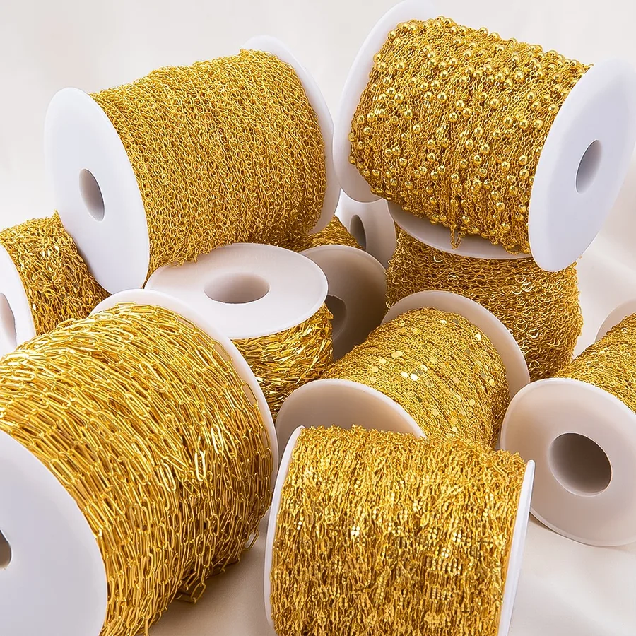 Gold Copper Chain Beads O-Shaped Chain Cross Chain Sequins DIY Bracelet Necklace Decoration Painting Accessories Rose Gold Plated