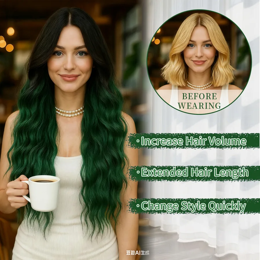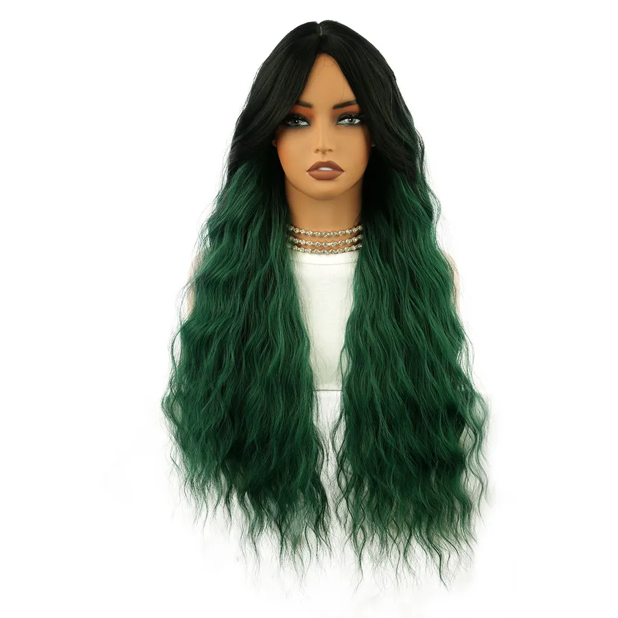 Greenish Black Wig Women’s Short Curly Synthetic Hair Frontal Bangs Party Halloween Christmas Holiday Wig Ethnic Style