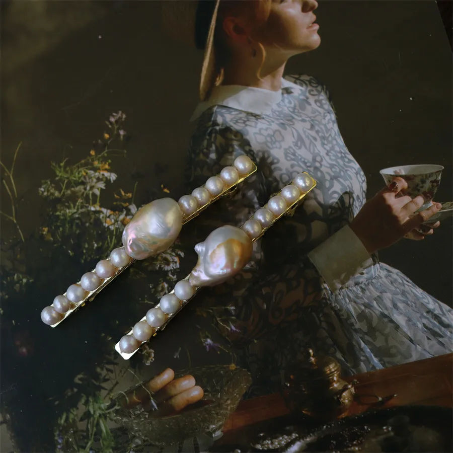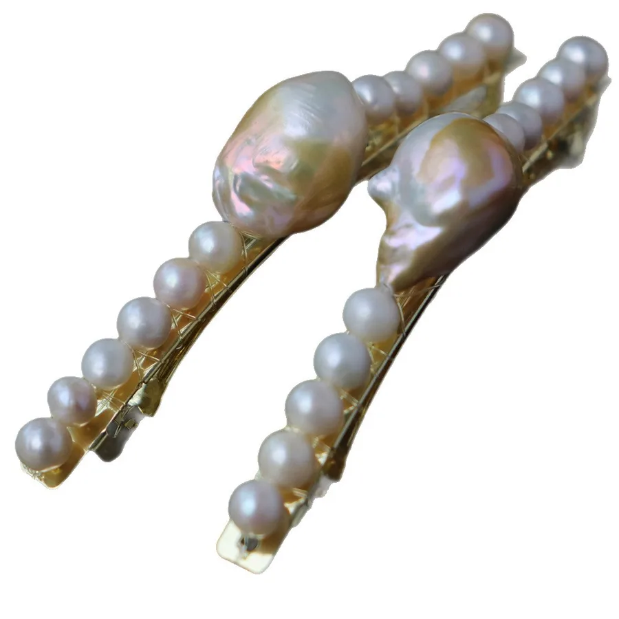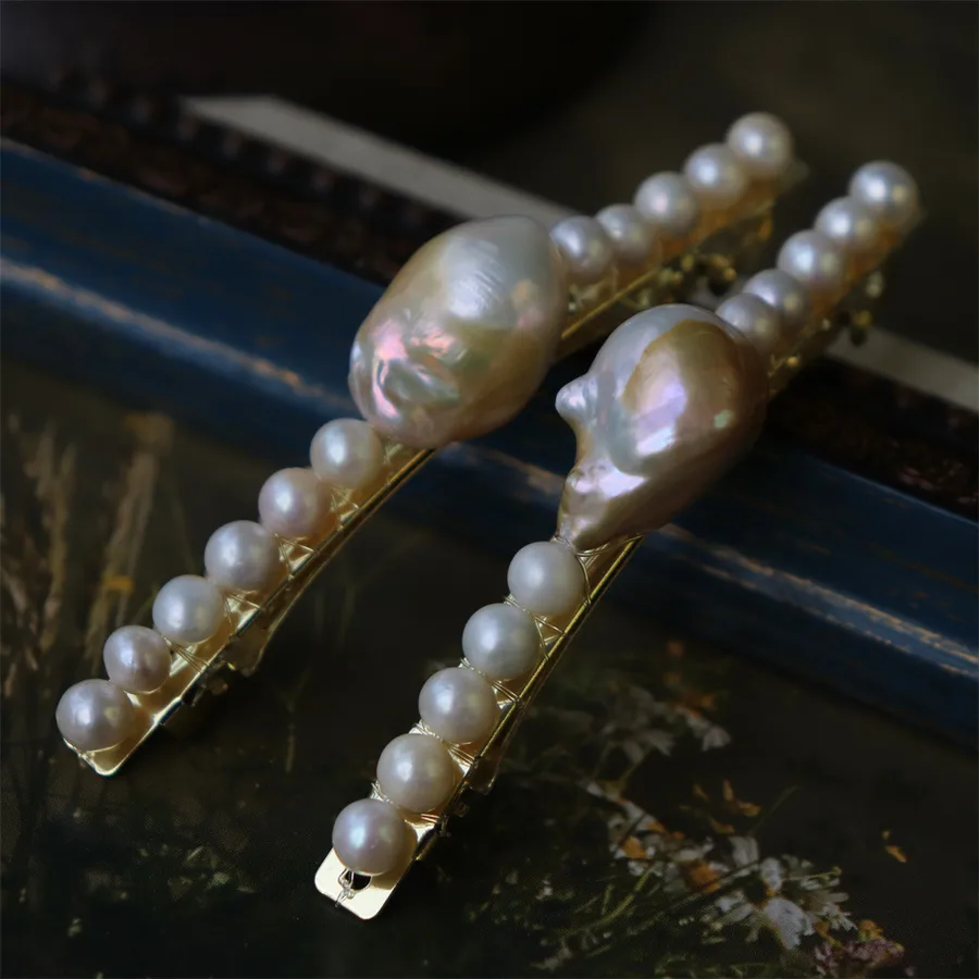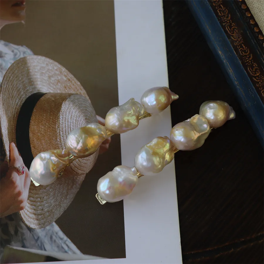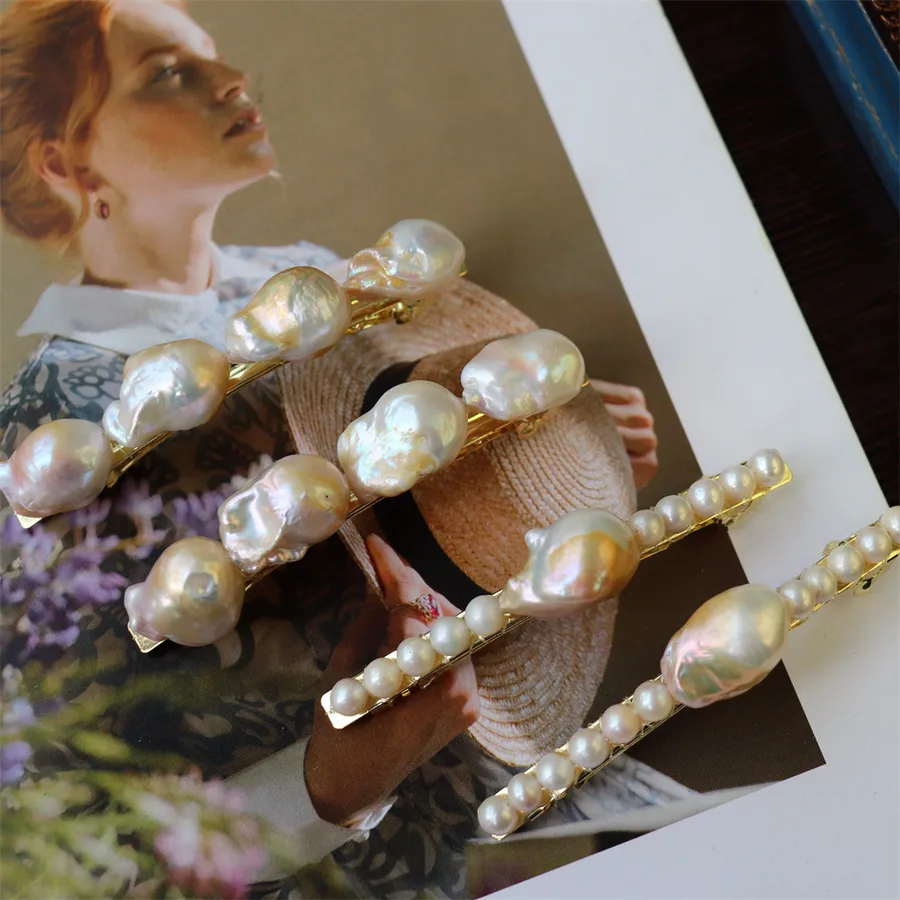 Handmade Pearl Hair Clip French Retro Gold-Plated Baroque Freshwater Pearl Top Clip Four Shiny Hair Accessories for Women