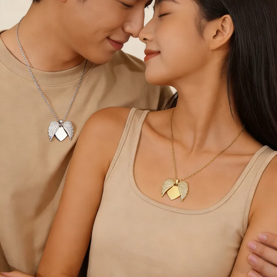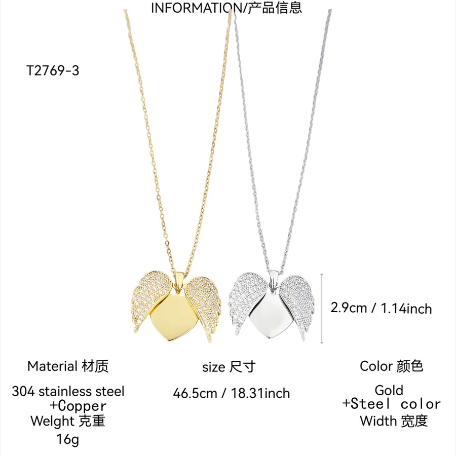 Heart Wings Inlaid Zircon 304 Stainless Steel 18k Gold Plated Vacuum Electroplating Waterproof Non-Fading Couple Necklace Valentine’s Day Gift