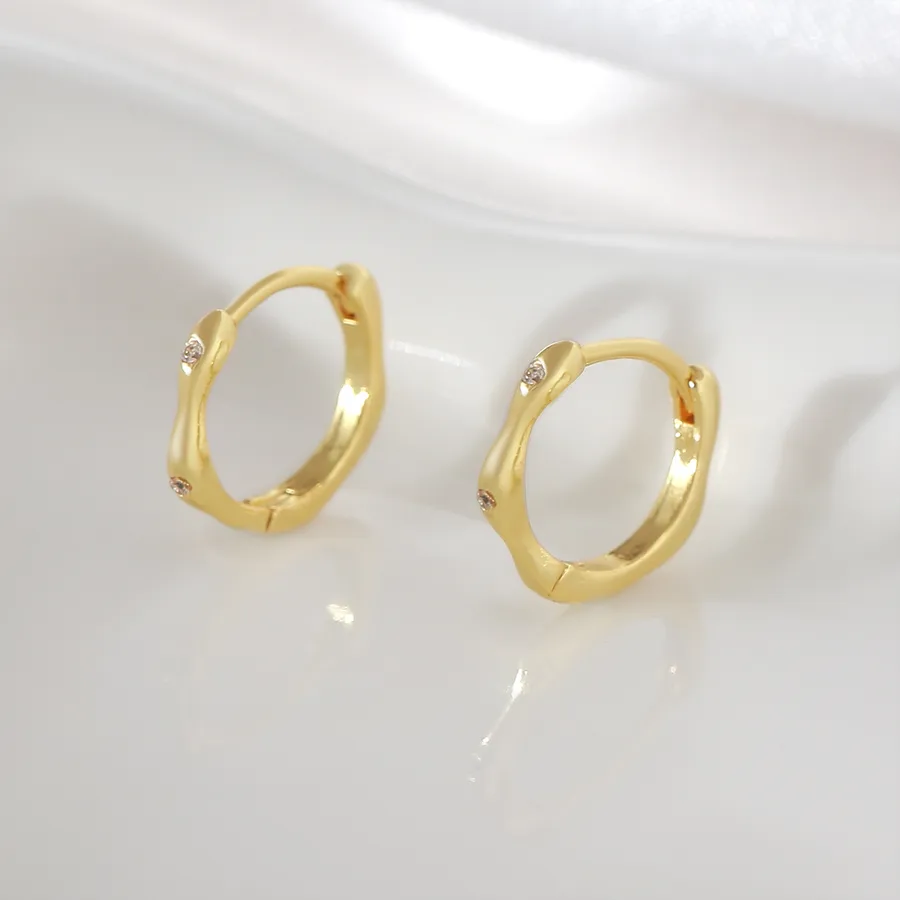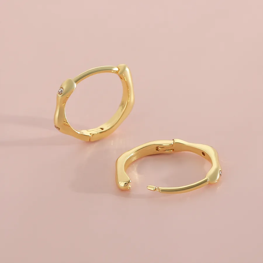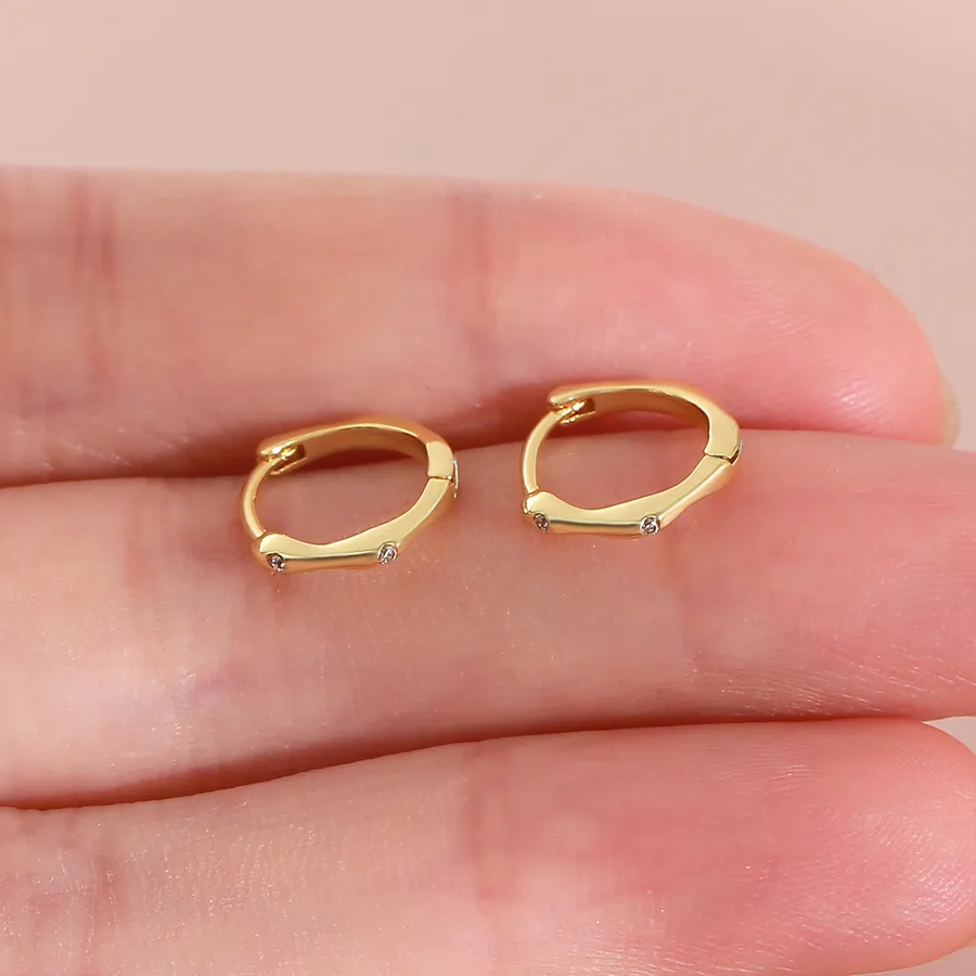 High-Quality Twisted Round Hoop Earrings Minimalist Style Copper Gold-Plated Irregular Rhombus Zircon Earrings Hoop