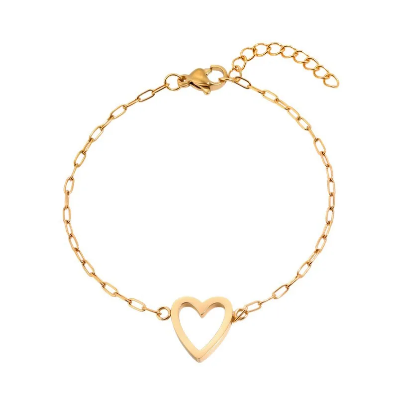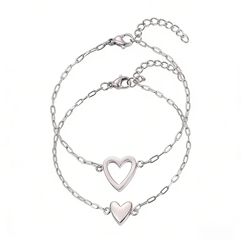 Hollow Heart-Shaped Titanium Steel Bracelet Adjustable Simple Design Women’s Couple Bracelet