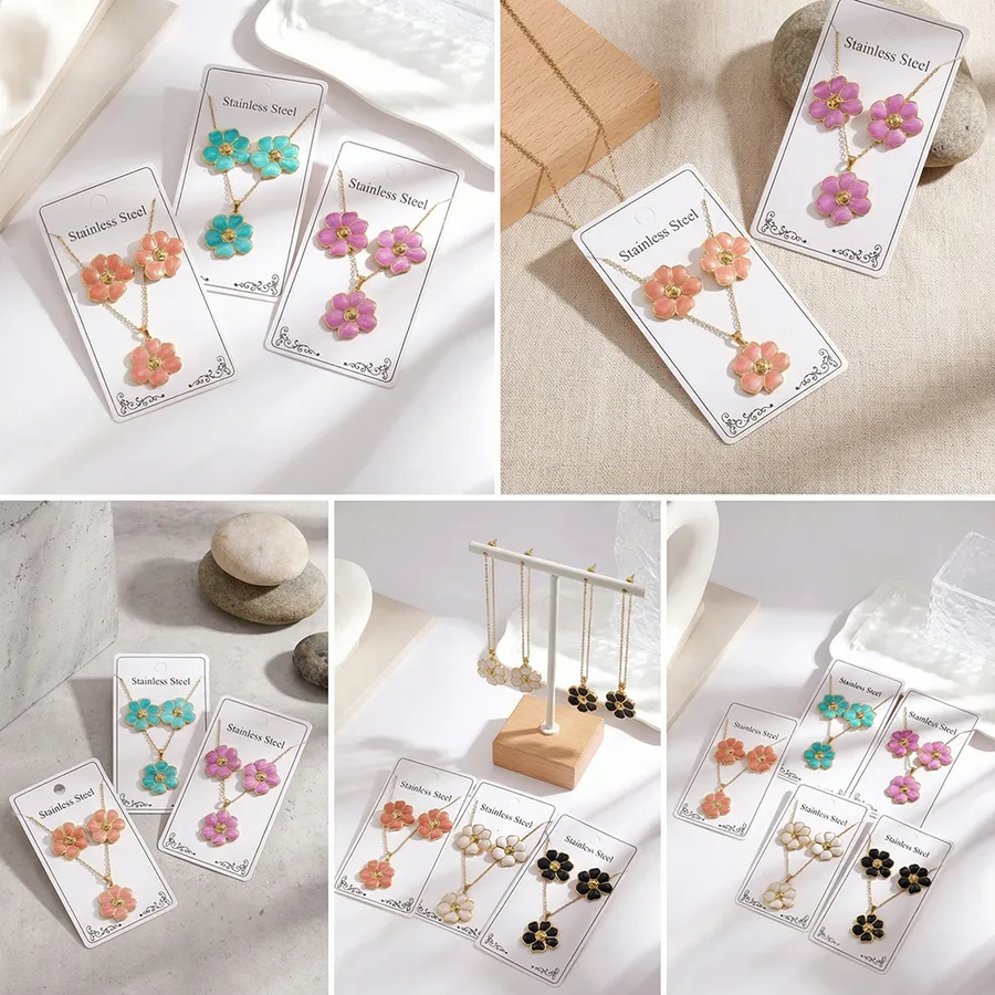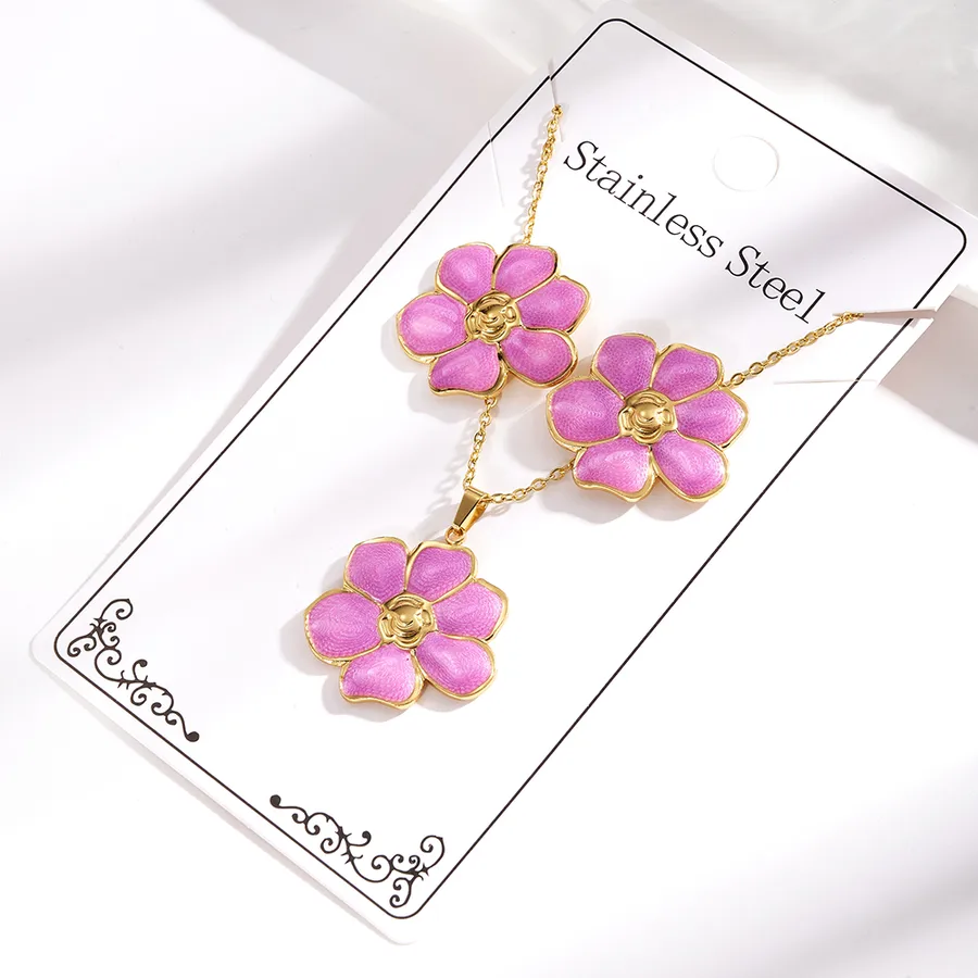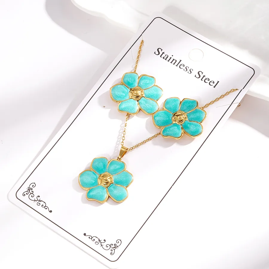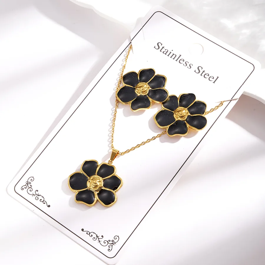 Imitation Gold Plated 304 Stainless Steel Oil Drop Six-Leaf Flower Electroplated Polished Necklace Jewelry Set for Women