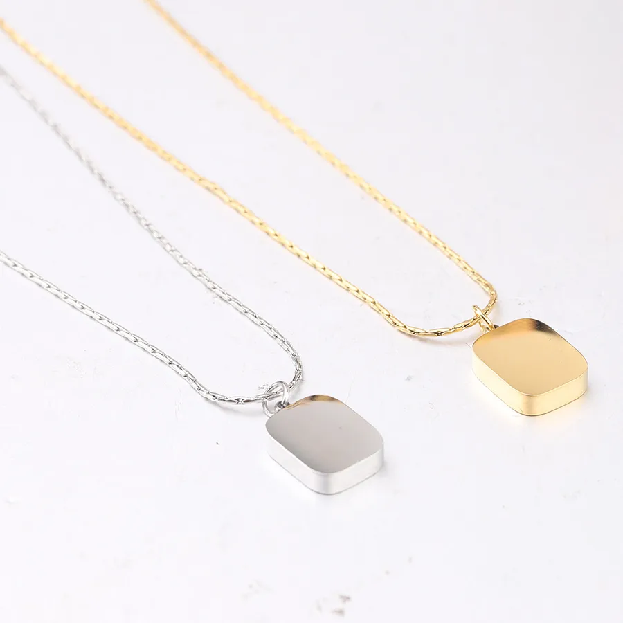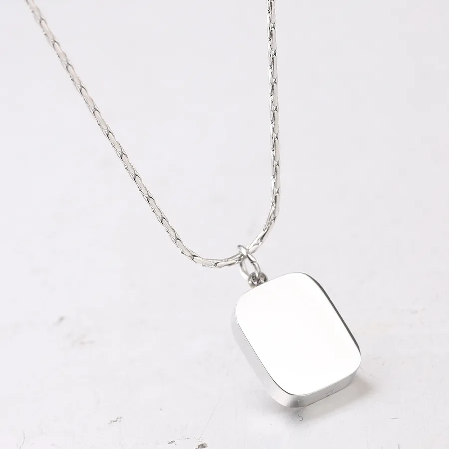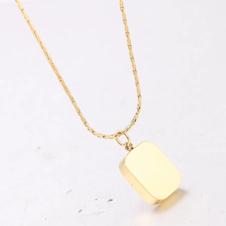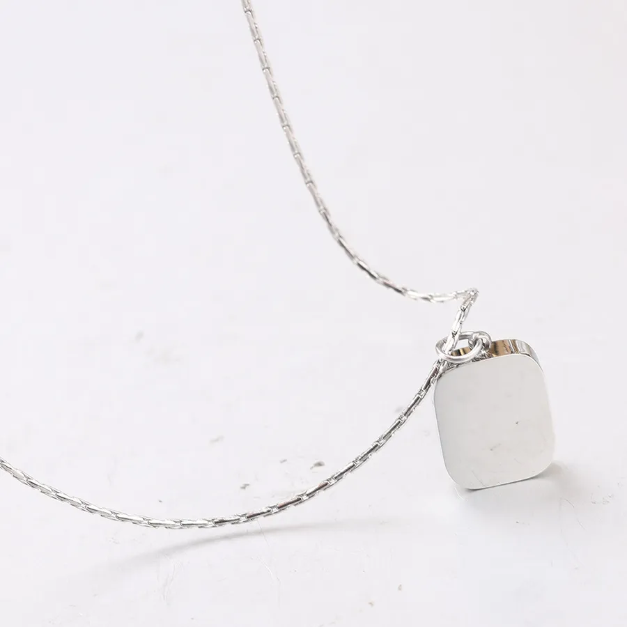 Laser Engraved Stainless Steel Mirror Block Pendant Women’s Accessories Geometric Titanium Steel Simple Necklace