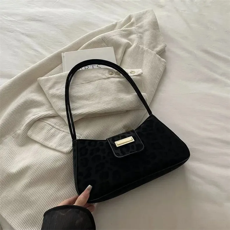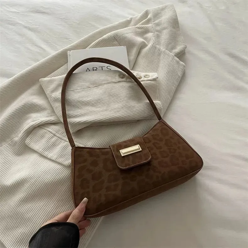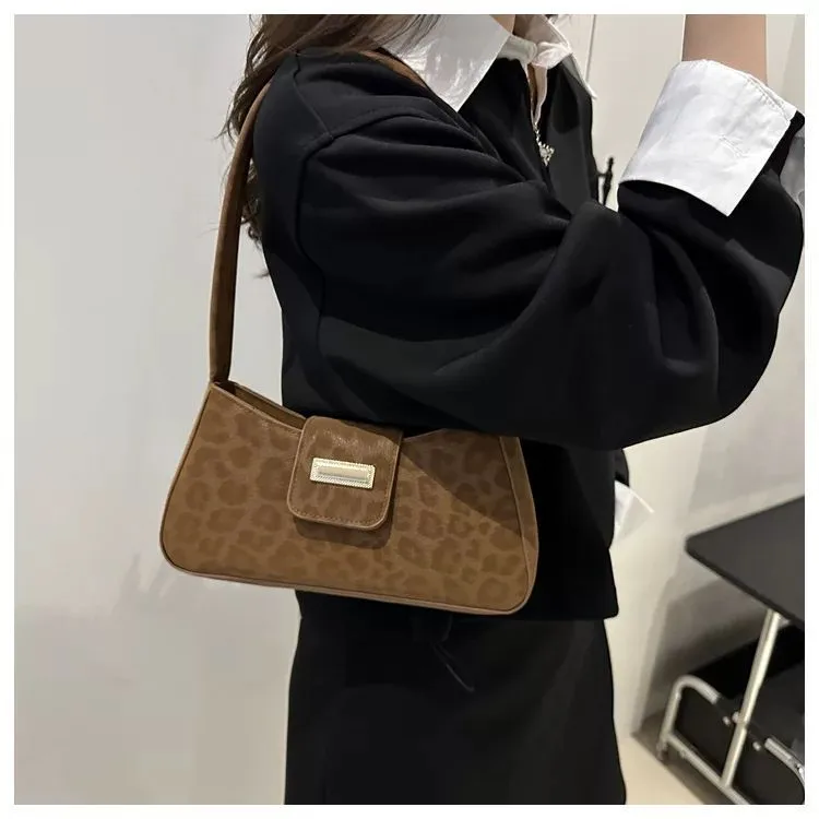 Leopard Print Suede High-Value Simple Casual Women’s Bag Single Shoulder Underarm Small Square Bag for Autumn and Winter