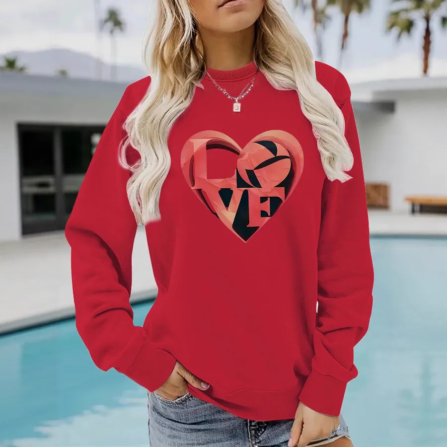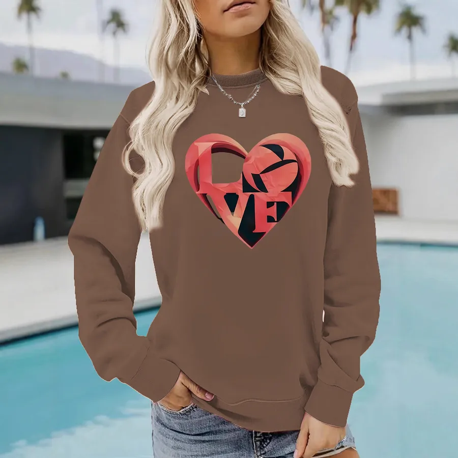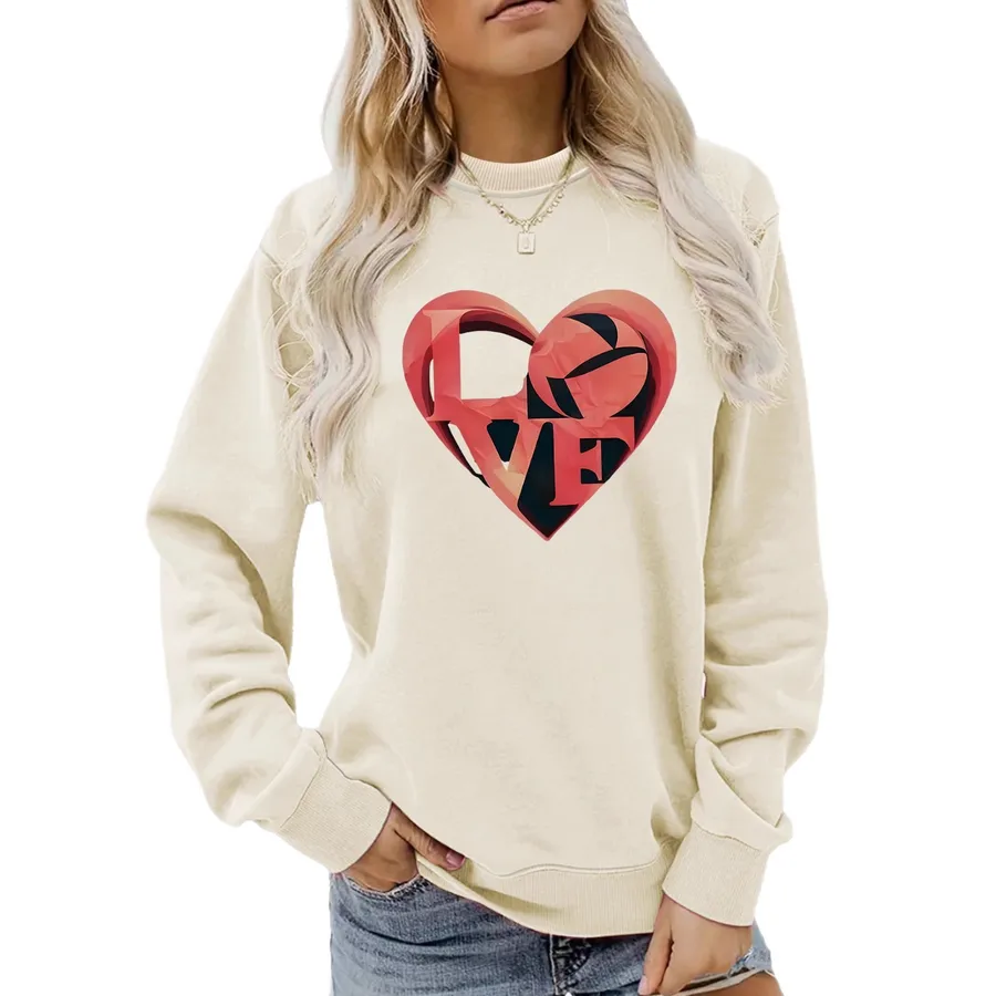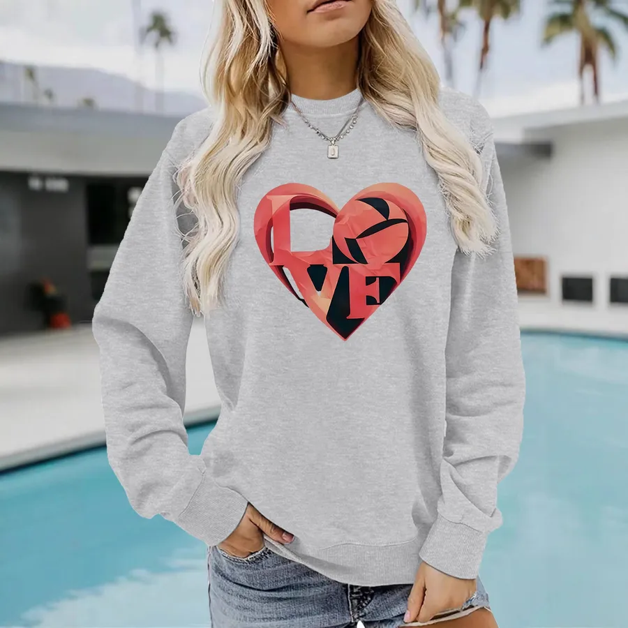 Love Letter Print Sweatshirt Round Neck Long Sleeve Casual Women’s Street Polyester Spandex Long