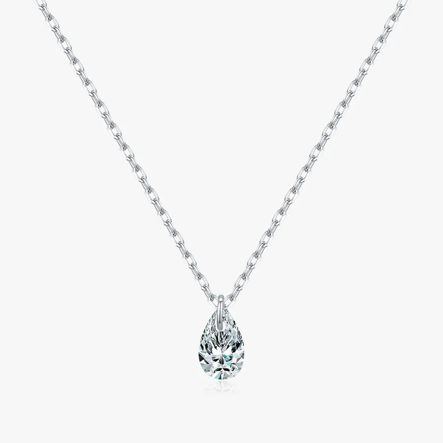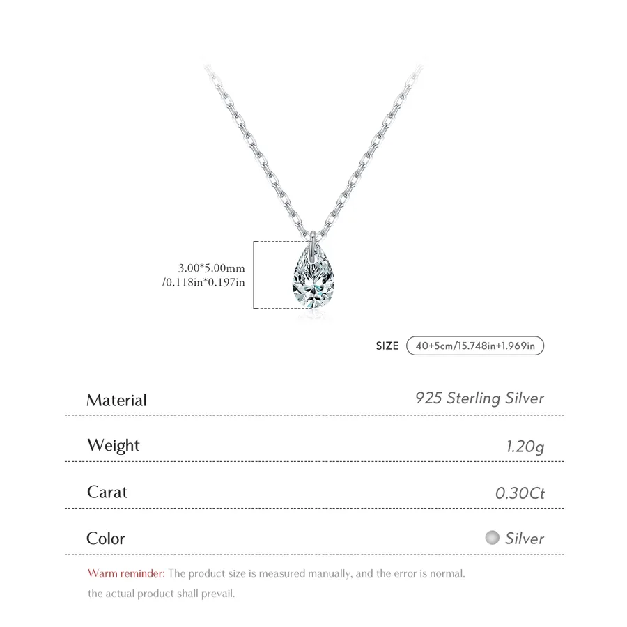 Moissanite Water Drop Sparkling Diamond Necklace for Women S925 Sterling Silver Cool Style Collarbone Chain Rhodium Plated 0.03µm