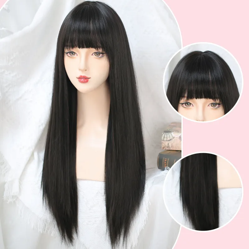 | Wig Hairstyle | Long straight hair neat bangs |