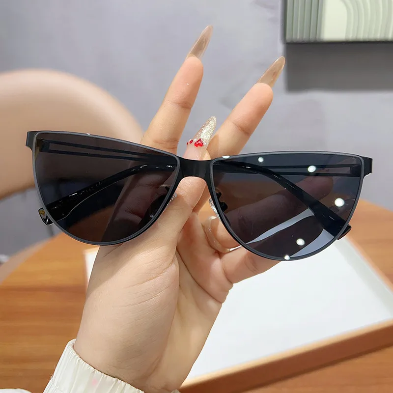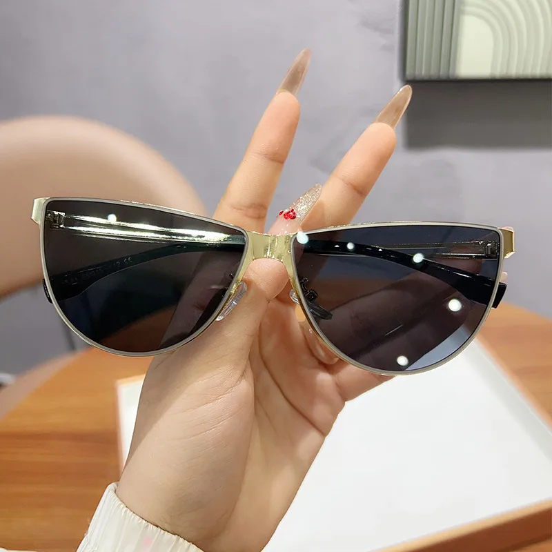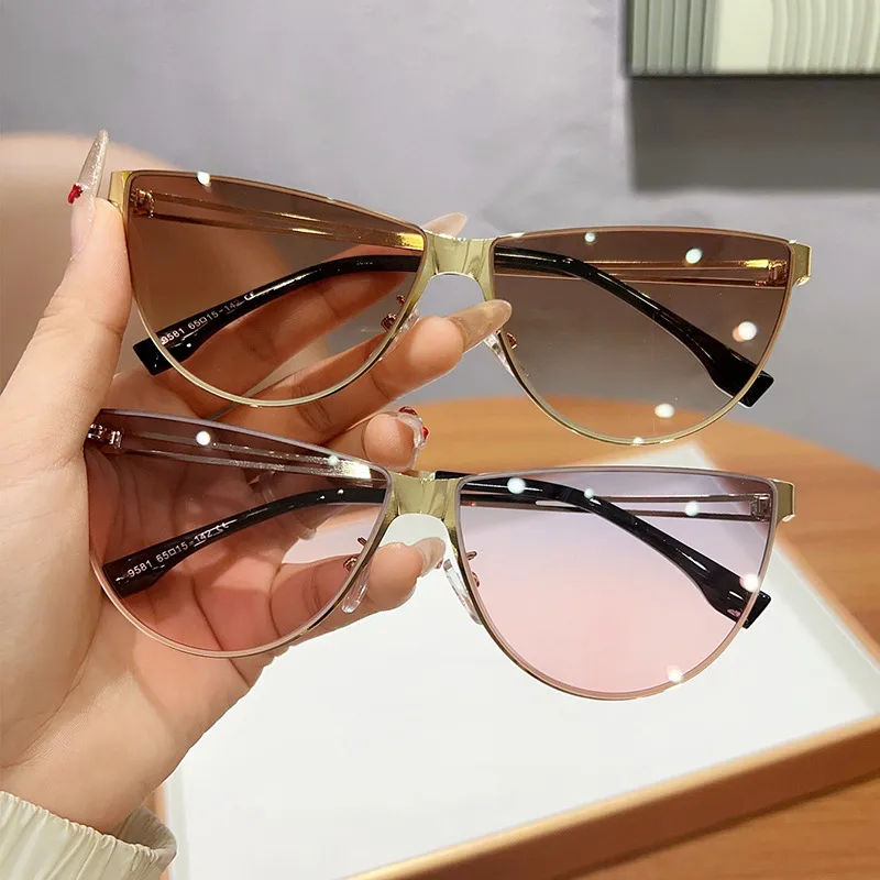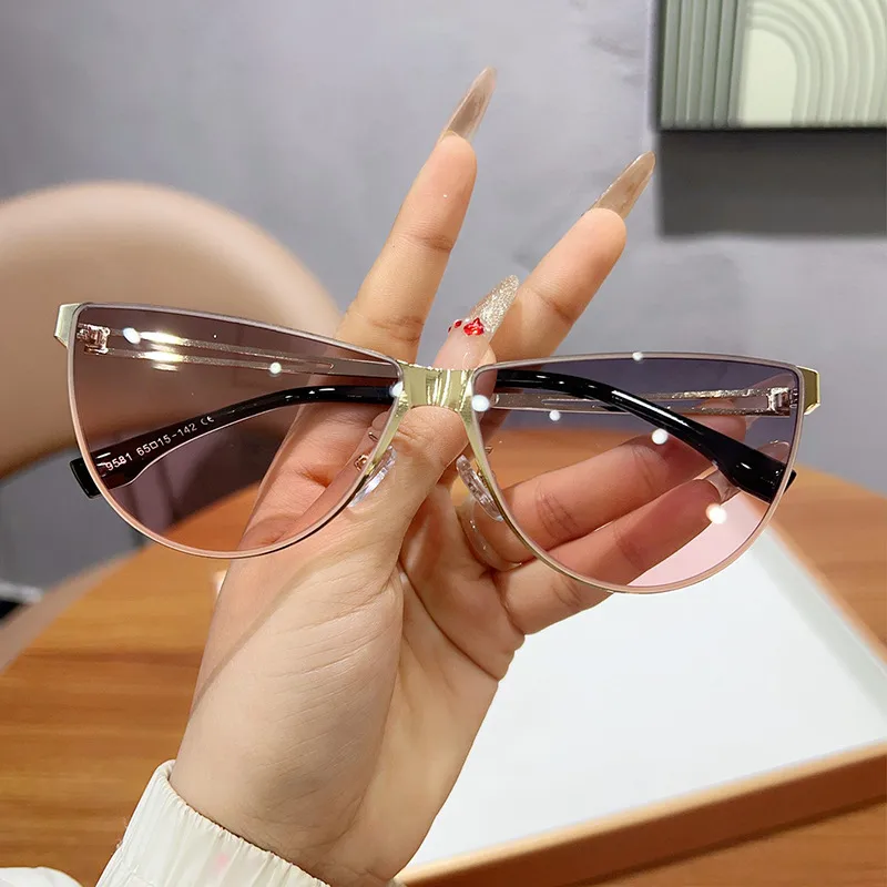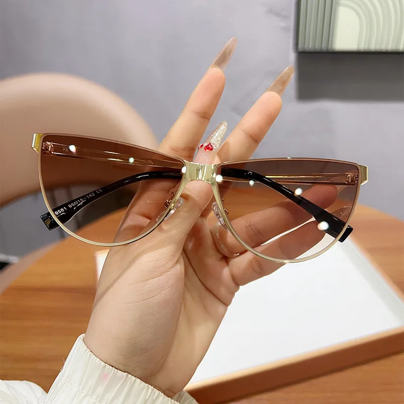 New Tea Color UV Protection Strong Light Men’s Driving Sunglasses Street Style 9581 Unisex Cat Eye Rimless