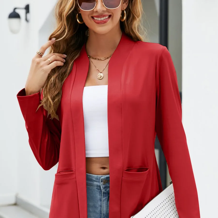 New Women’s Fashion Casual Top With Pockets Suit Jacket European Style Long Sleeve Commute Elegant Polyester Blend
