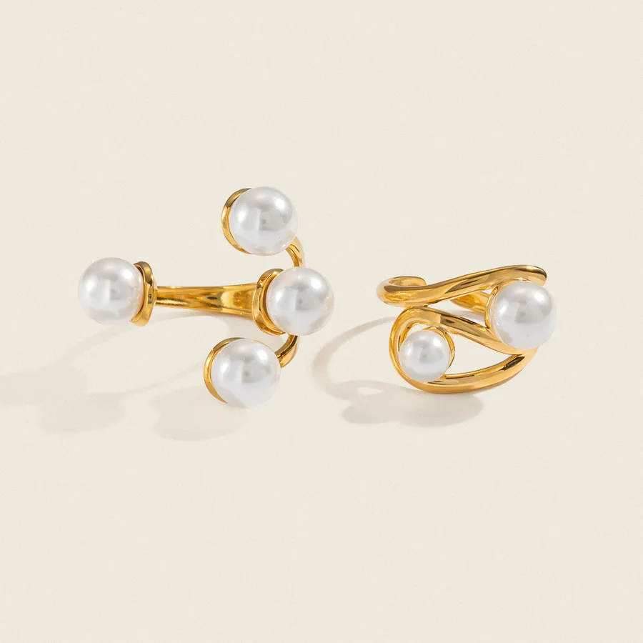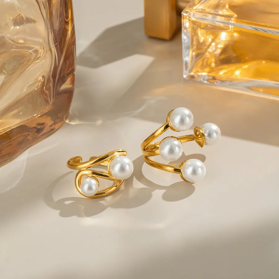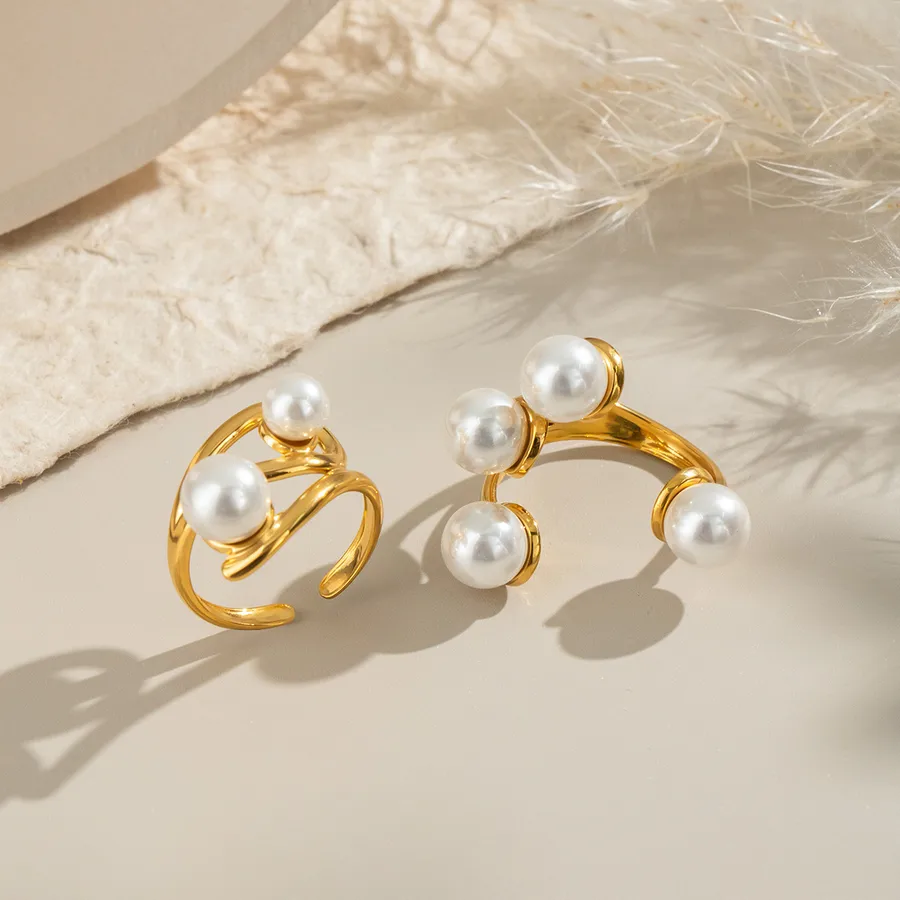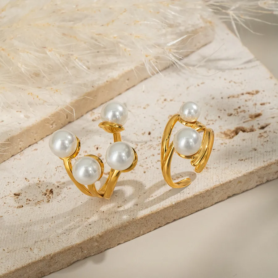 Open Ring Imitation Pearl Stainless Steel Material Non-Fading 18K Gold Plated Jewelry