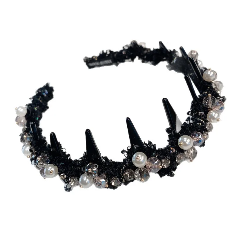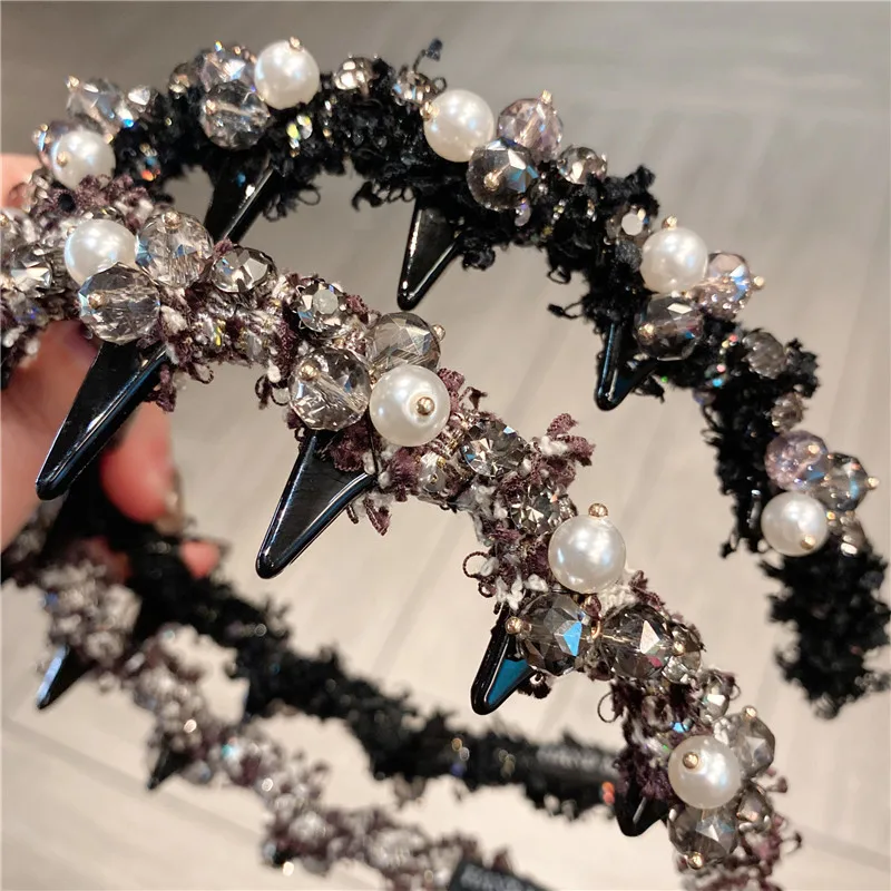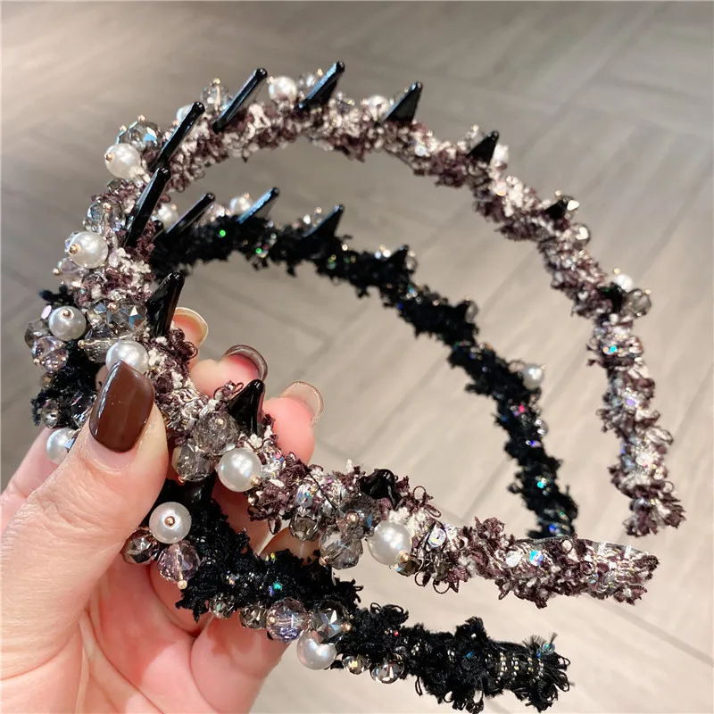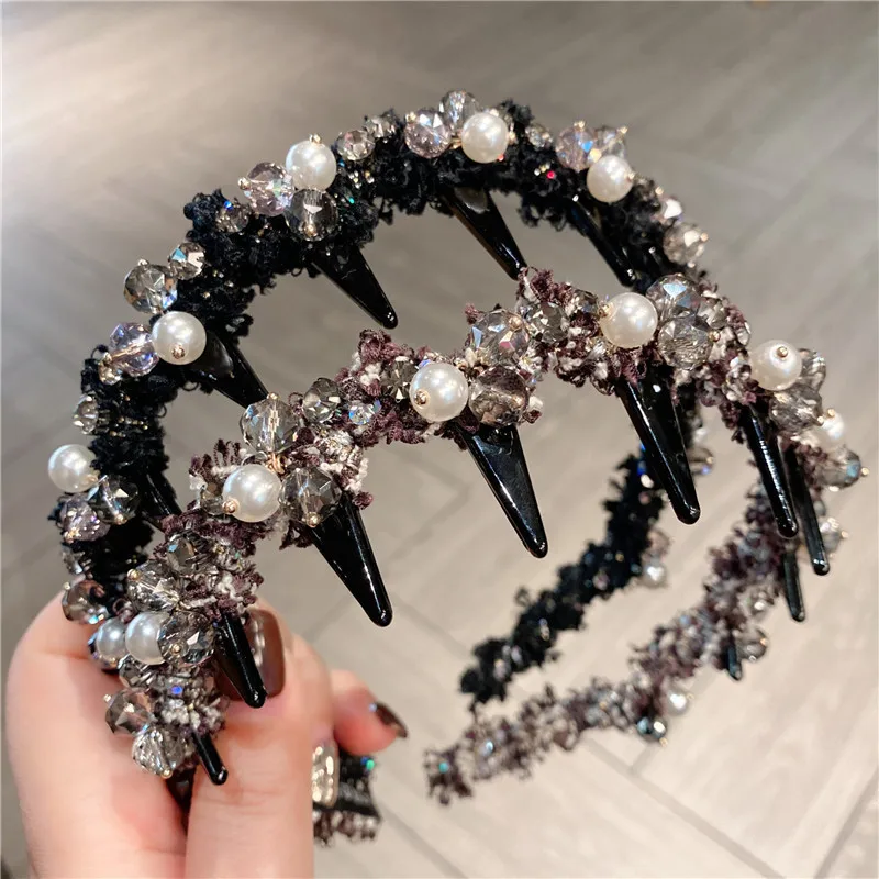 Pearl Crystal High Top Hairband Ladies Anti-Slip Comb Design Daily Wear Plaid Headwear Suitable for All Seasons