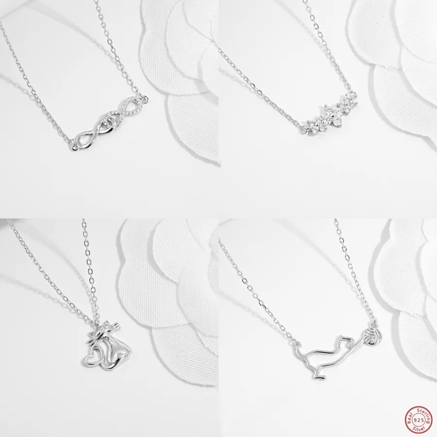 Platinum Plated 925 Silver Water Plated Zircon Animal Cat Flower Asymmetric Claw Inlaid Cable Chain Cross Chain O Chain Women’s Necklace