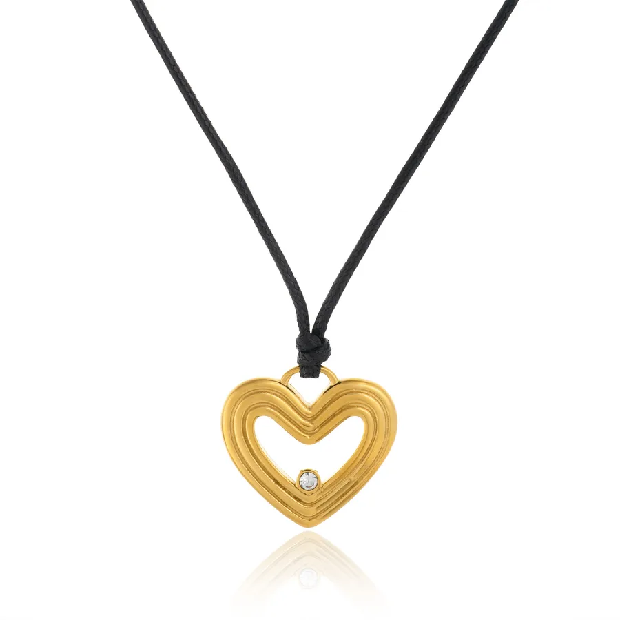 Rose Gold Plated Titanium Steel Heart Necklace Adjustable Length Winter Edition 70cm Black Leather Cord Real Gold Plated