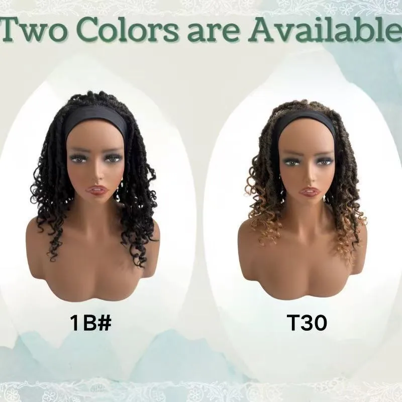 Short Curly Wig for African Women, Ice Silk Gradient Color, Crochet Headband Scarf, Full Head Wig, Casual Wear