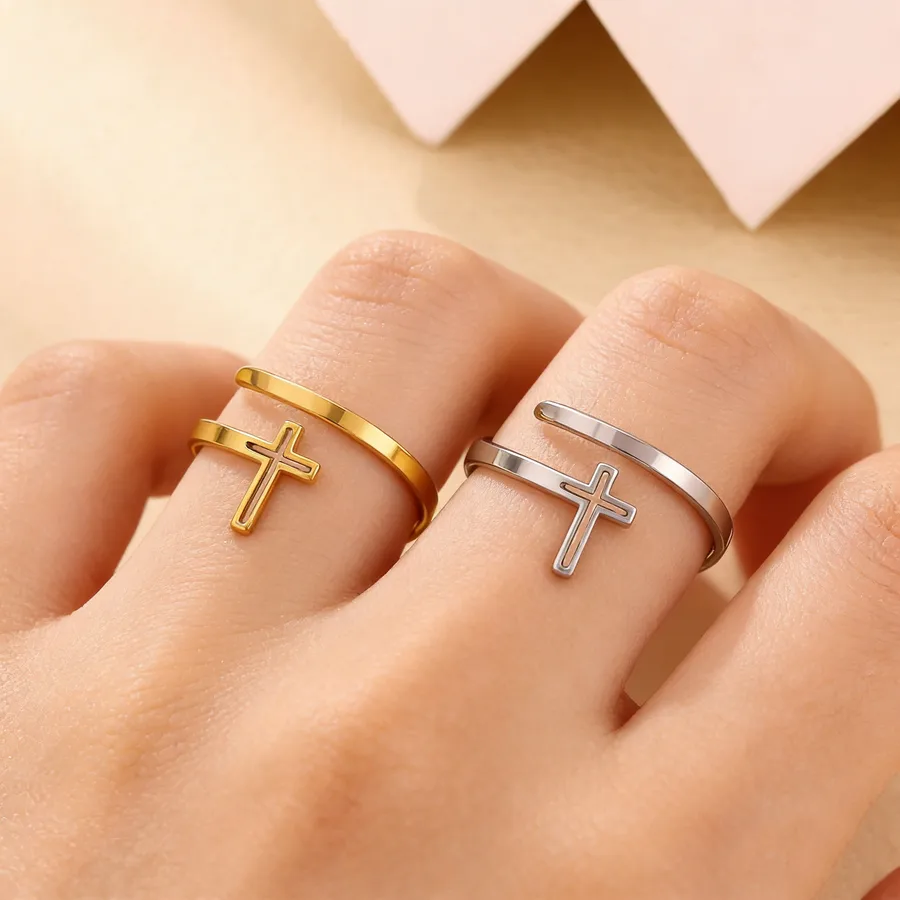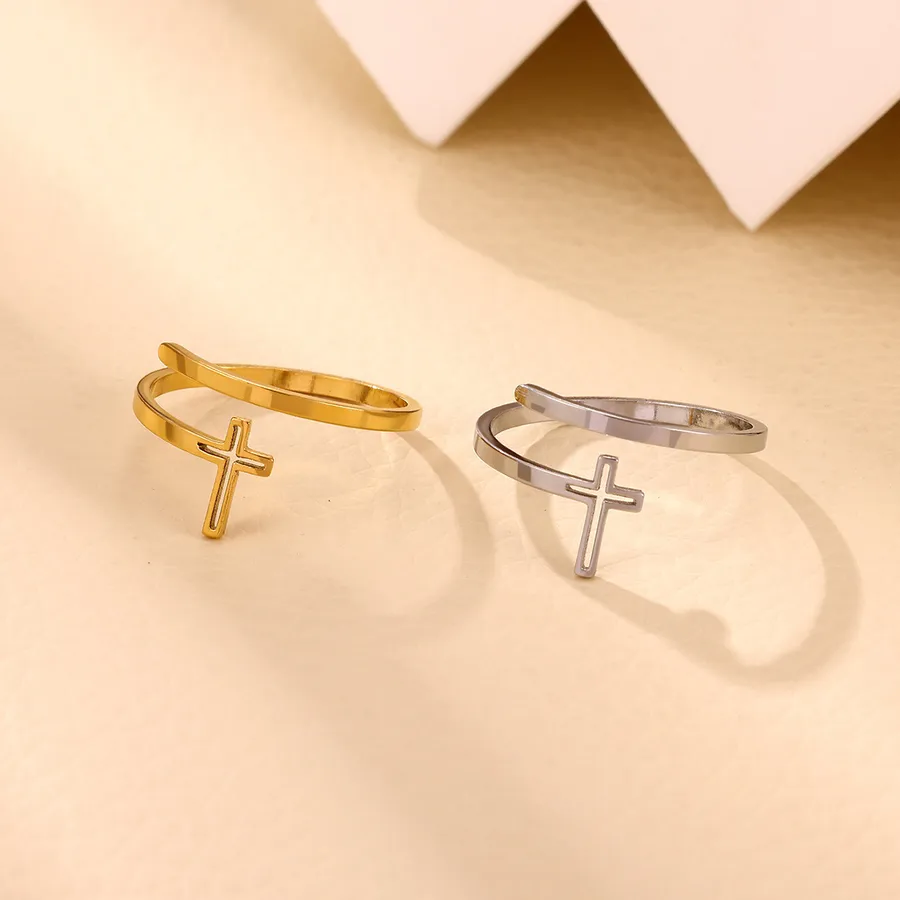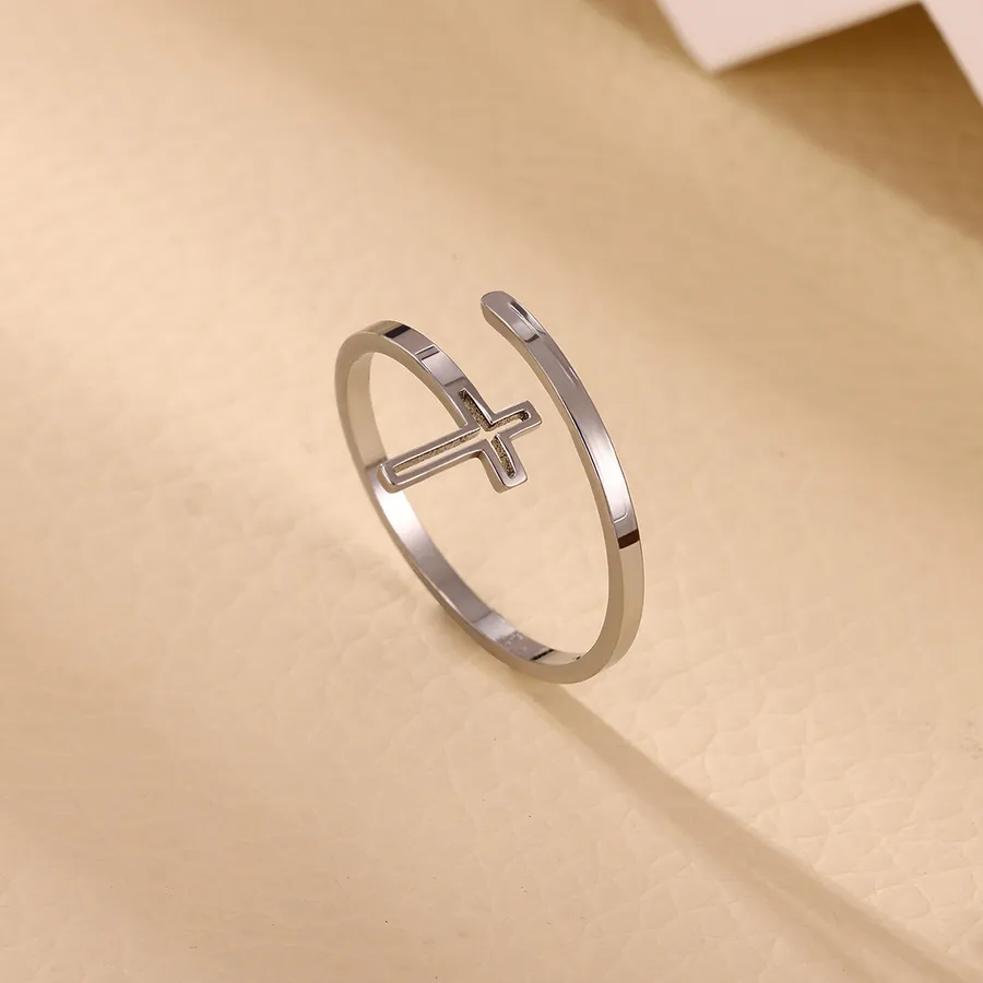 Simple Cross Open Ring Hollow Design Daily Wear Unisex Ring Wedding Ring
